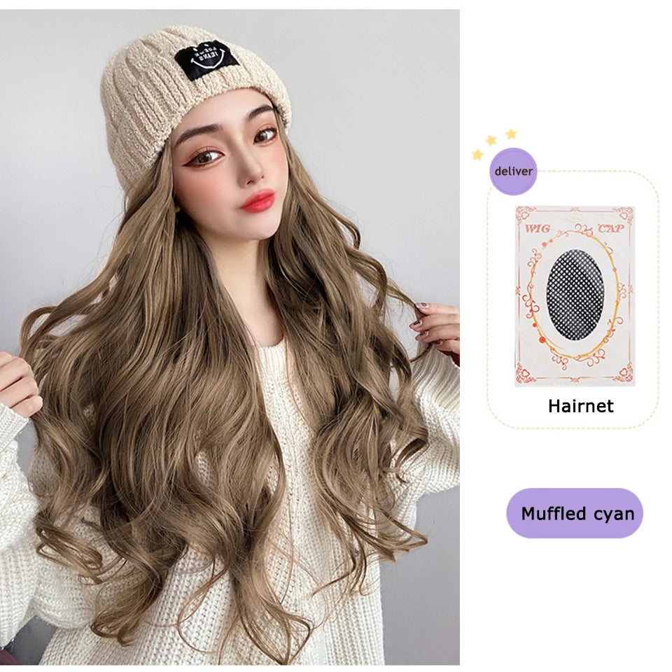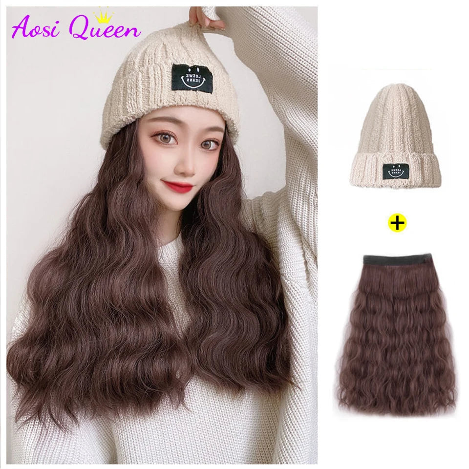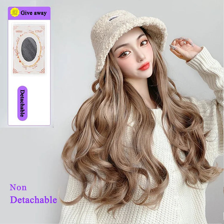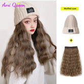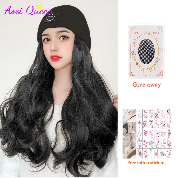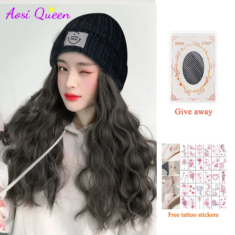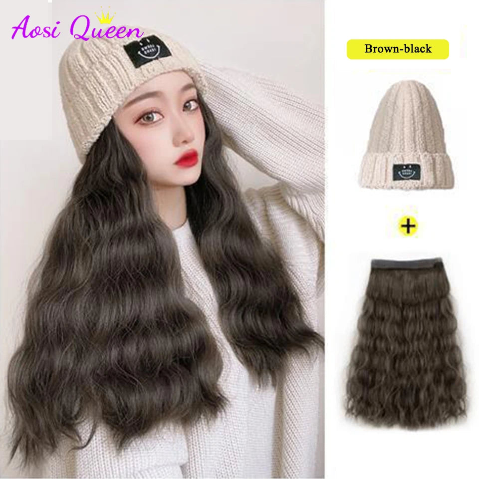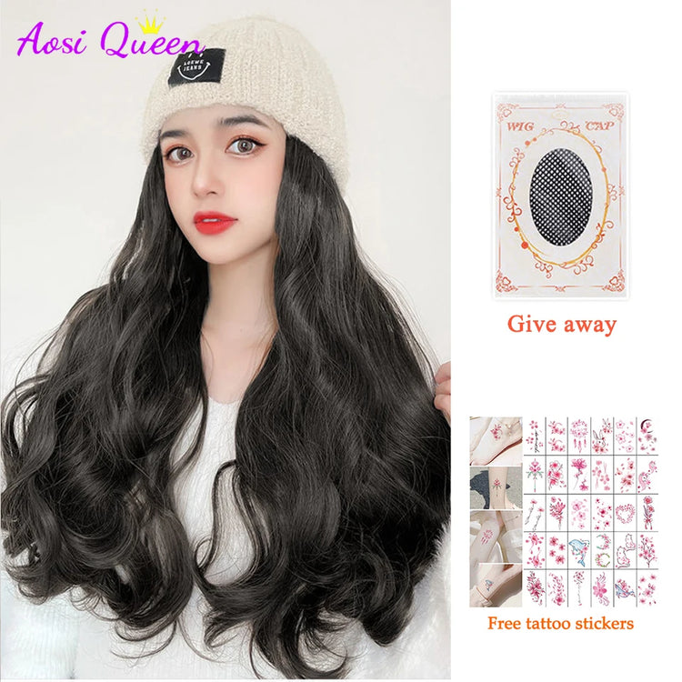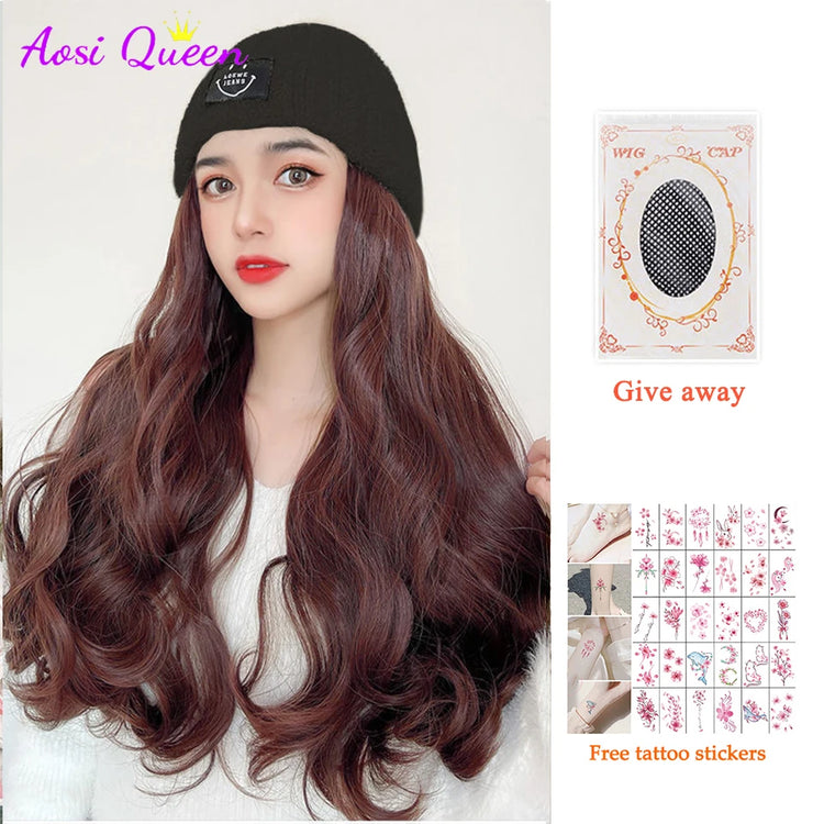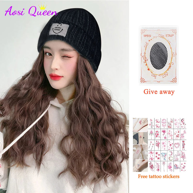 AS Syntheti hair Lamb swool Painter hat Mixed with haze blue Brown Wigblack Straight Wigs Synthetic Hat Wig