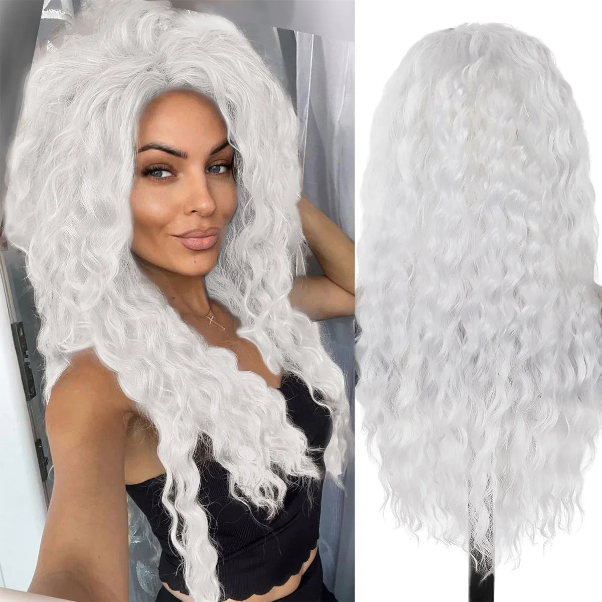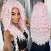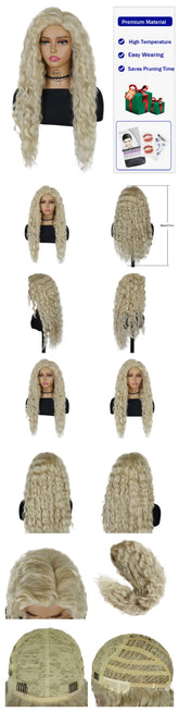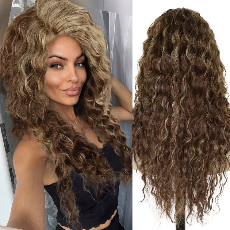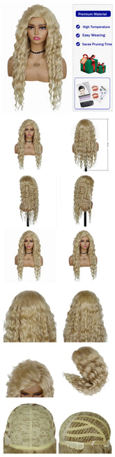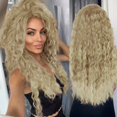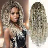 Ash Blonde Curly Wig Synthetic Long Curly Hair Wigs for Women Fluffy Hairstyle Wave Ombre Wig Costume Carnival Party Regular Wig