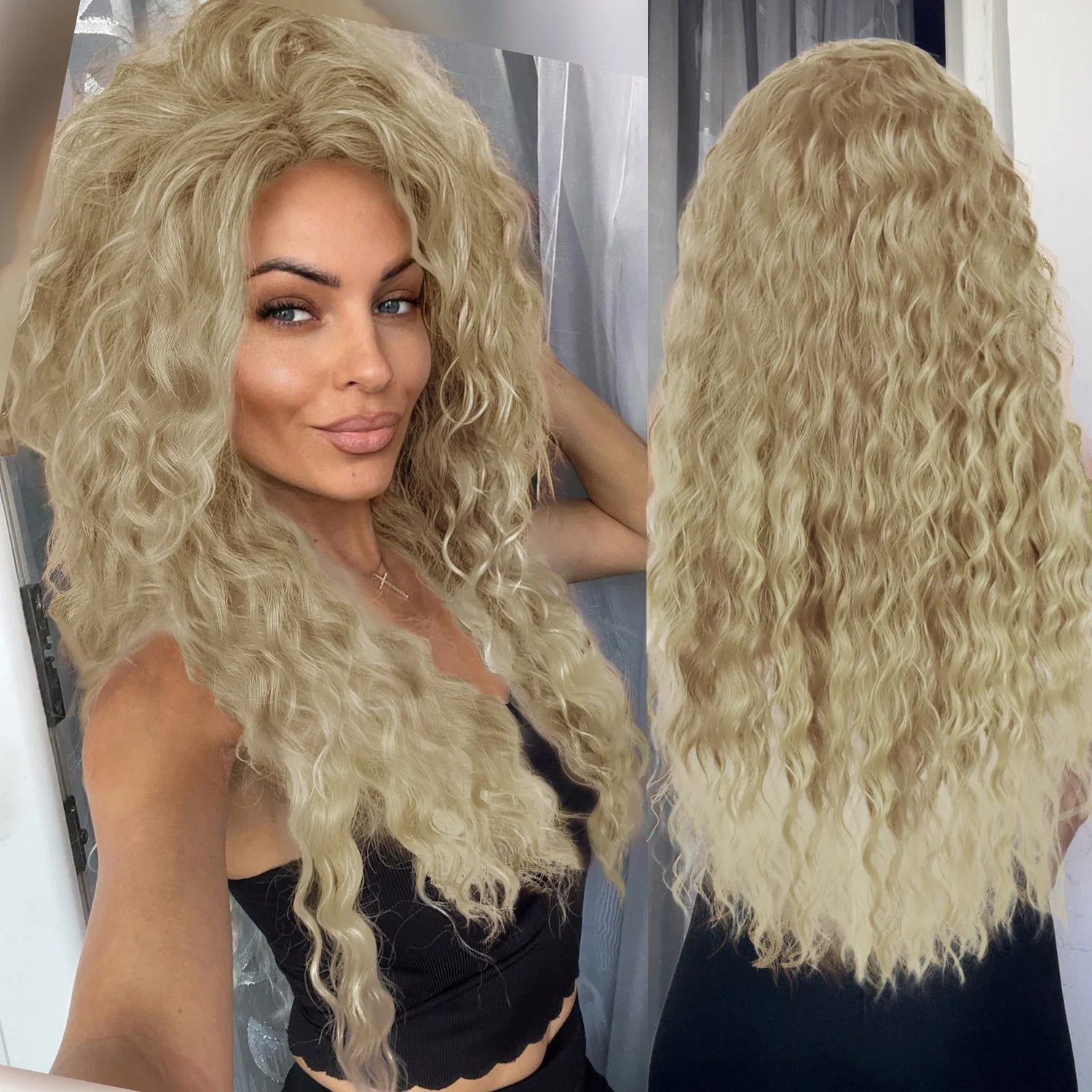 This GNIMEGIL Ash Blonde Long Wavy Curly Wig has a beautiful ombre color and gives you big curly hair! I have curly hair, but it has thinned so much that I can no longer have my own natural big curly hair. Big curly hair has always been my favorite, and I definitely get it back with this wig.