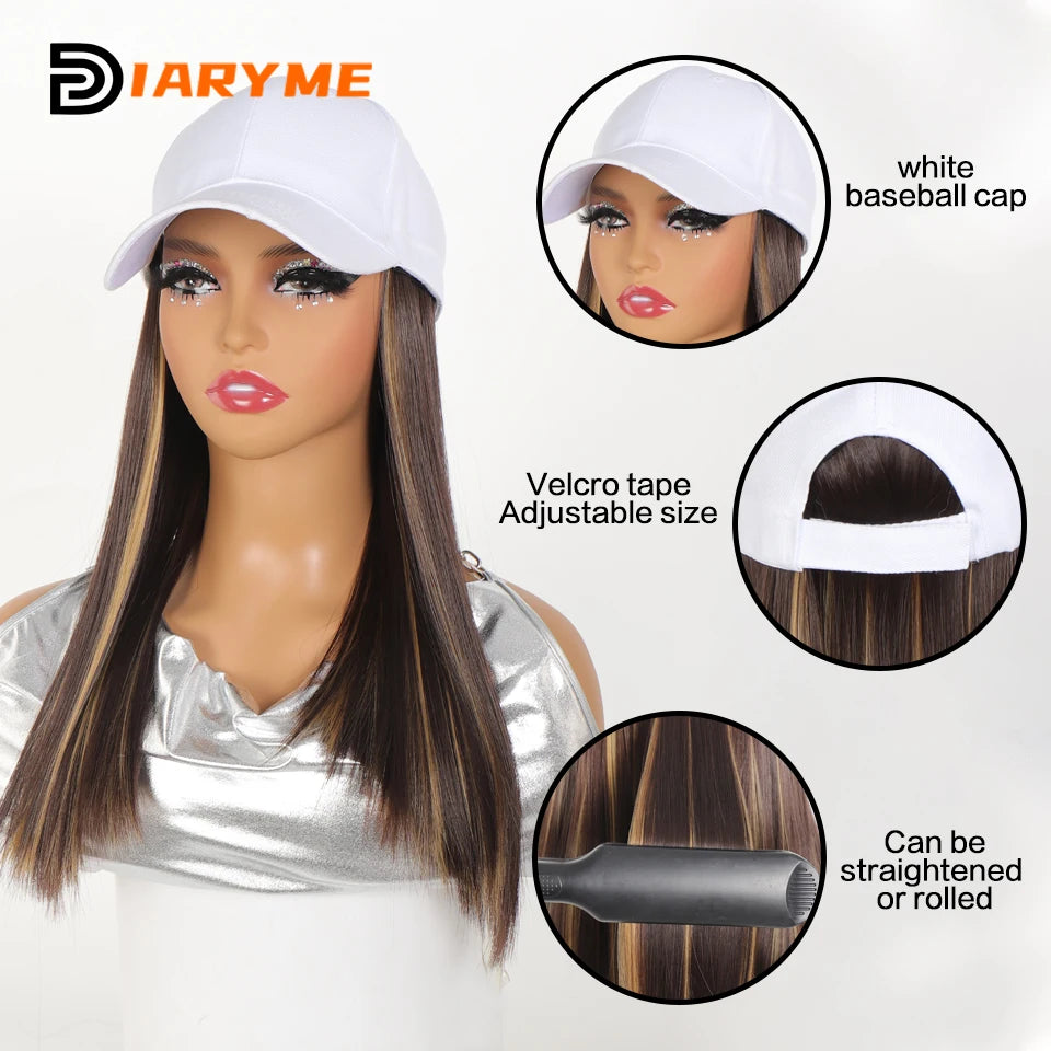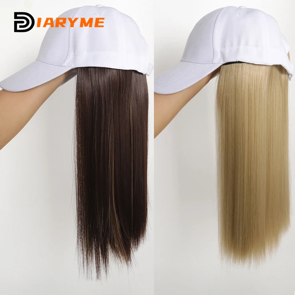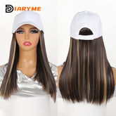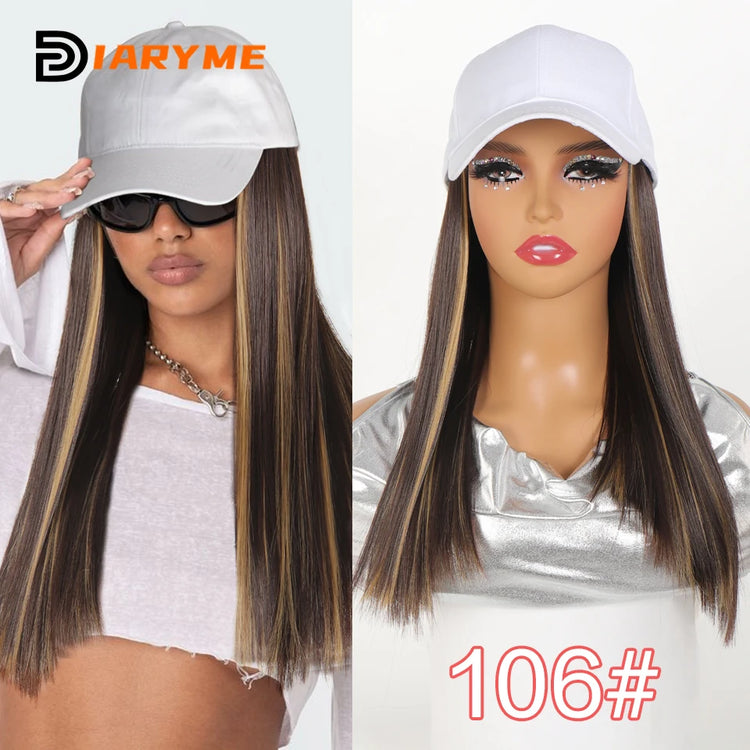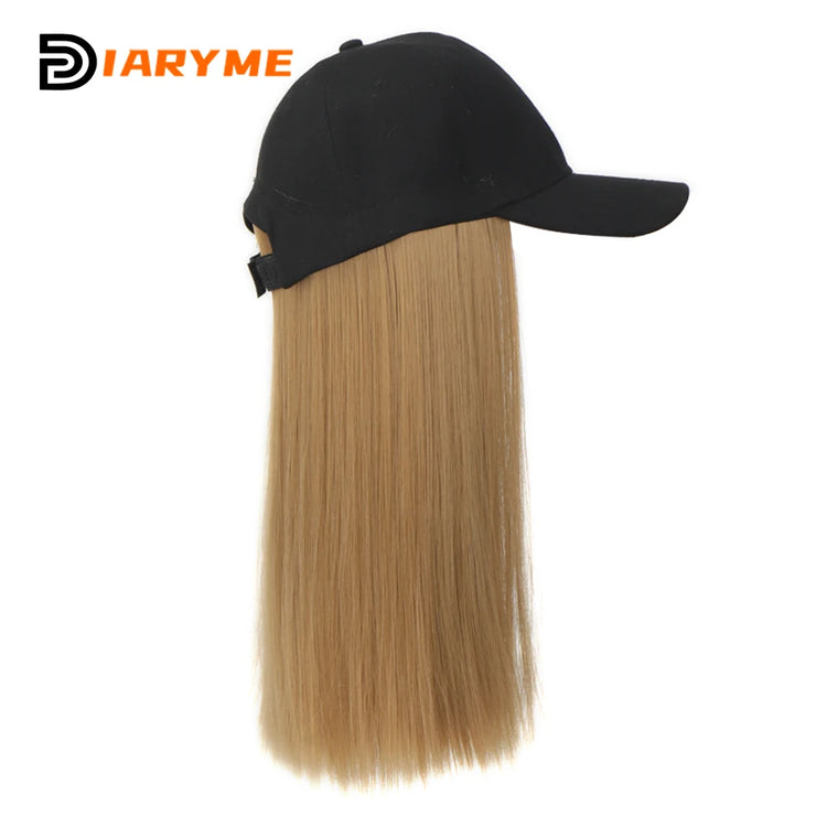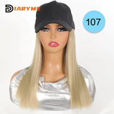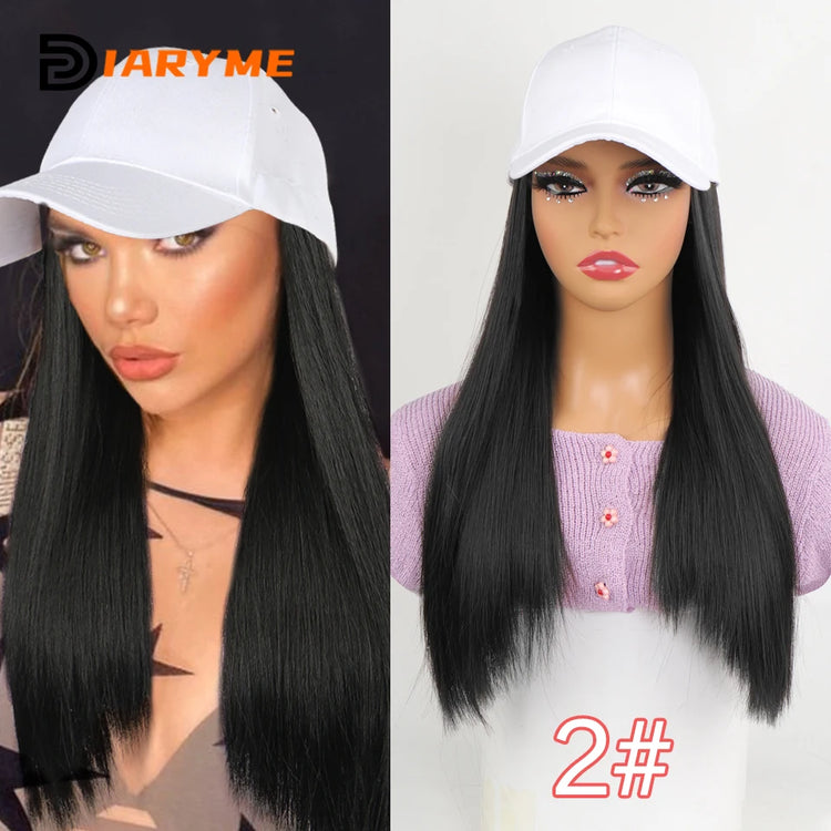 Baseball cap wig Synthetic Wigs With White Black Hat Long Straight Hair Wigs For Women connect Hat One Piece Wig Hat adjustable
