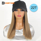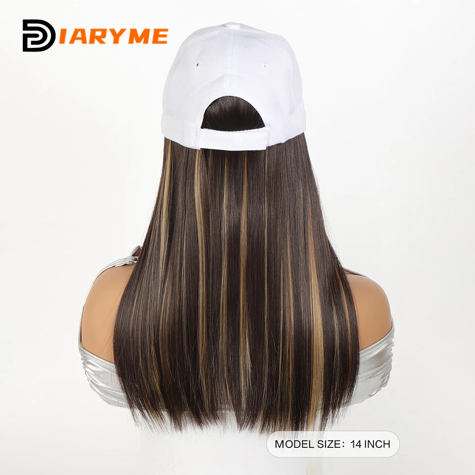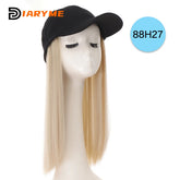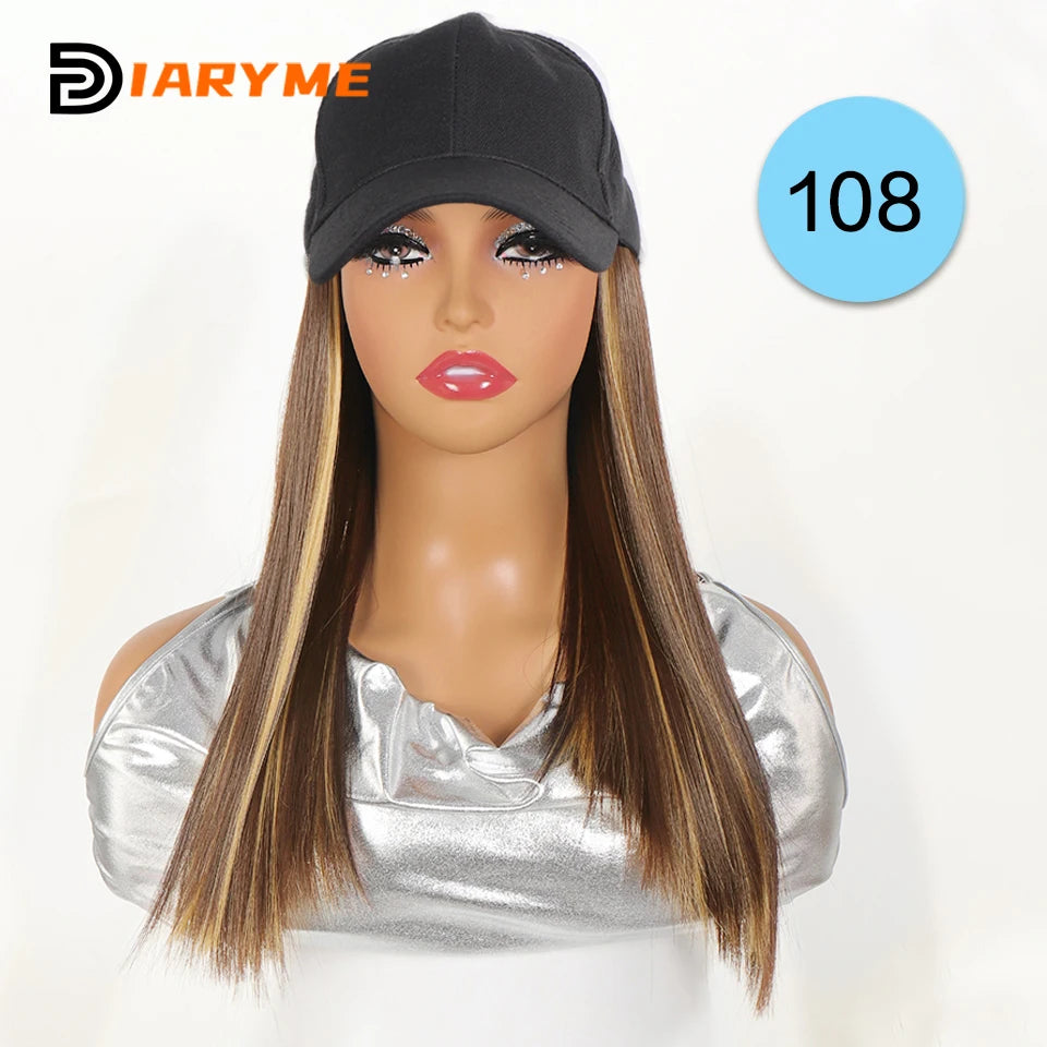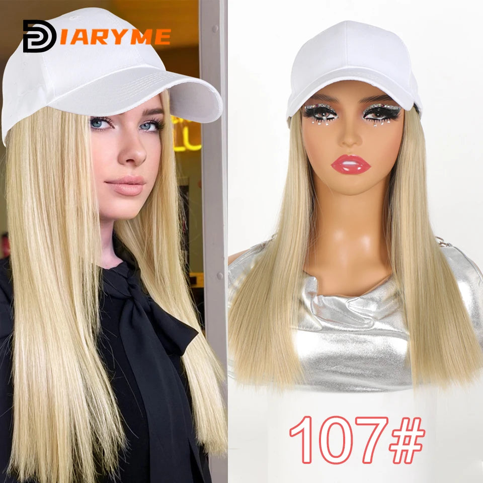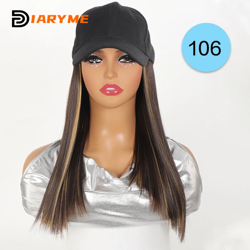 Baseball cap wig Synthetic Wigs With White Black Hat Long Straight Hair Wigs For Women connect Hat One Piece Wig Hat adjustable