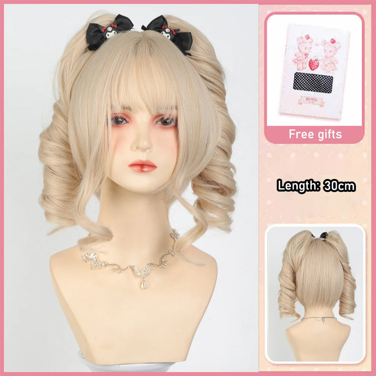 Beauty Synthetic Princess Cut Double ponytail Lolita Wig with Bangs Wig Girl Cute Ombre White Cosplay Halloween Harajuku Wig