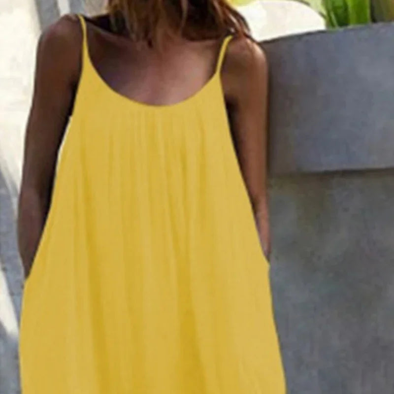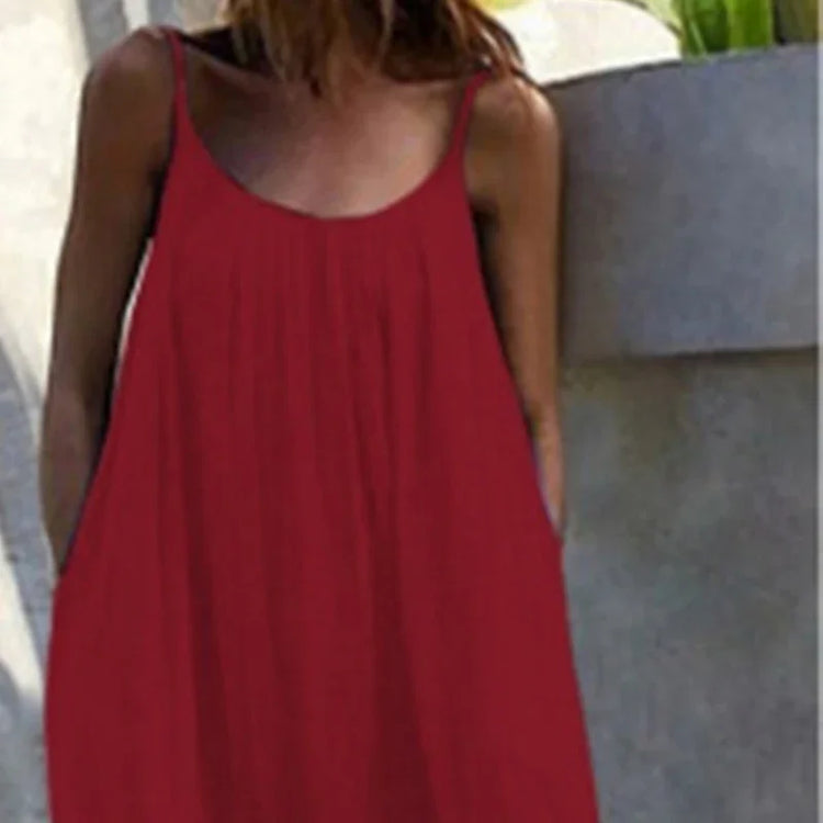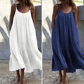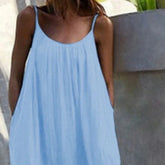 BKLD 2024 Summer Dress Beach Vacation Wear For Women Casual Sling Solid Color Sleeveless U-neck Loose Ruffles A-line Short Dress