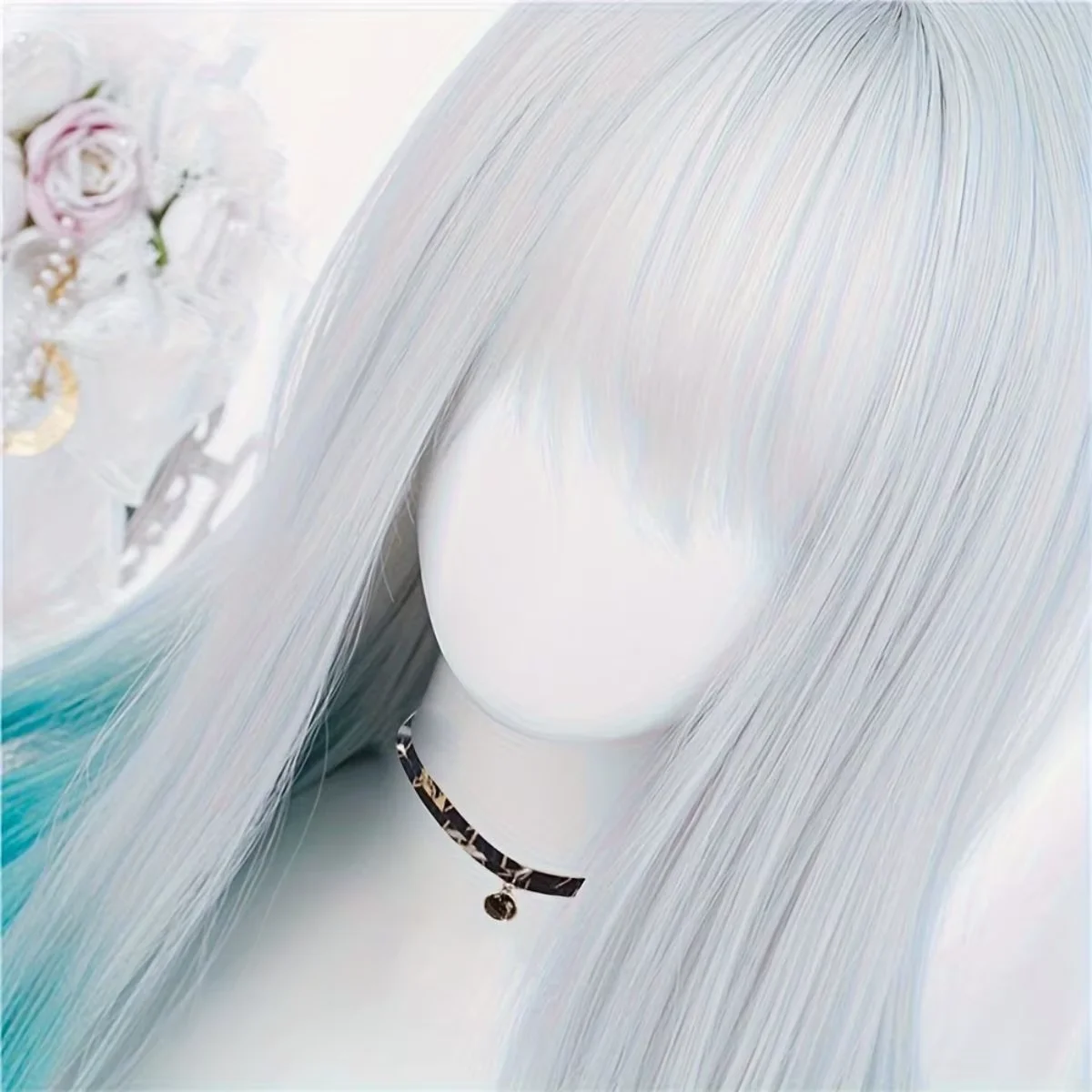 Blue White Gradient Bangs Straight Synthetic Wig with Ponytail Anime Party Cosplay Fashion 2025 New Fiber Hairdo