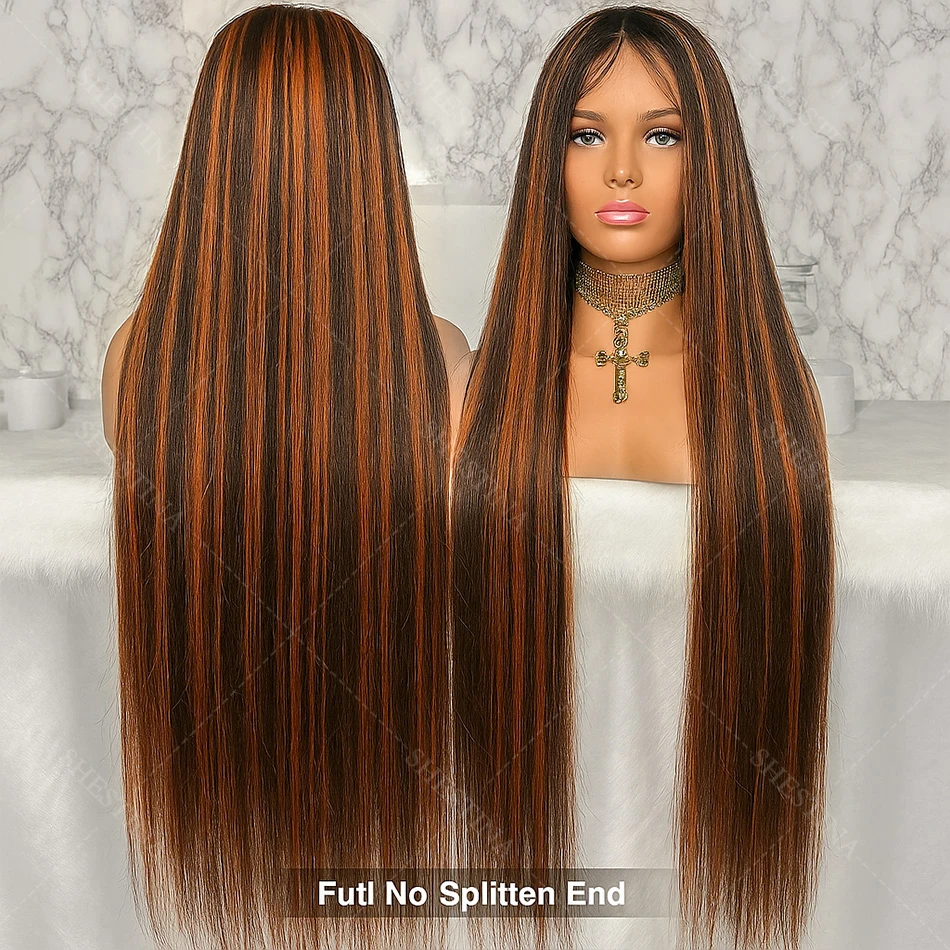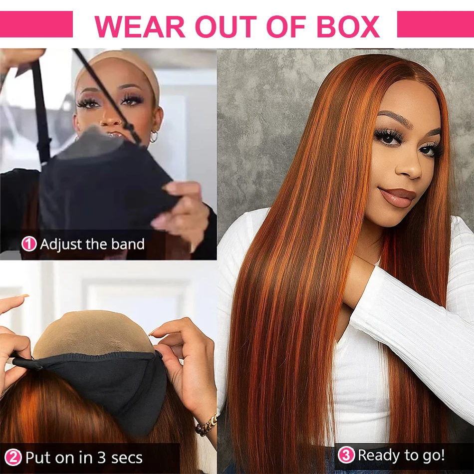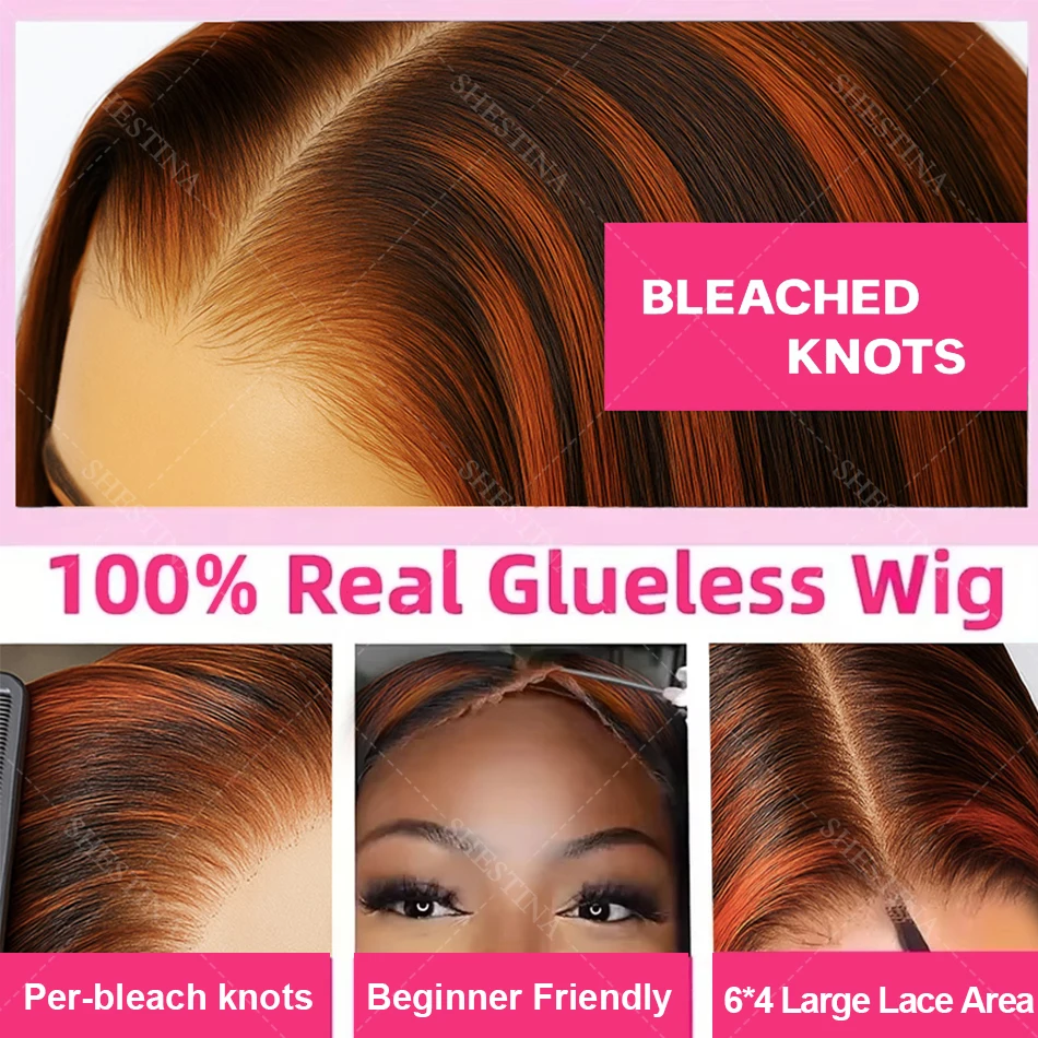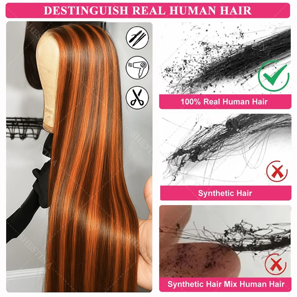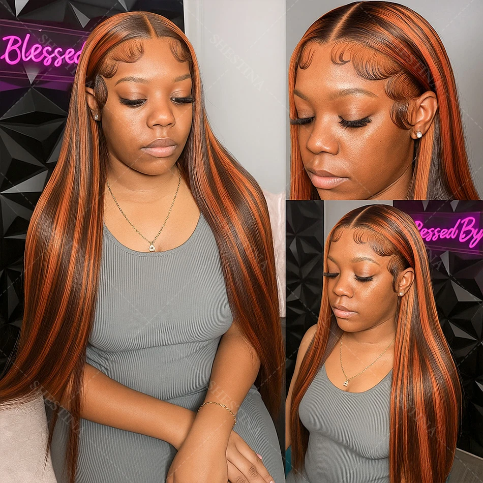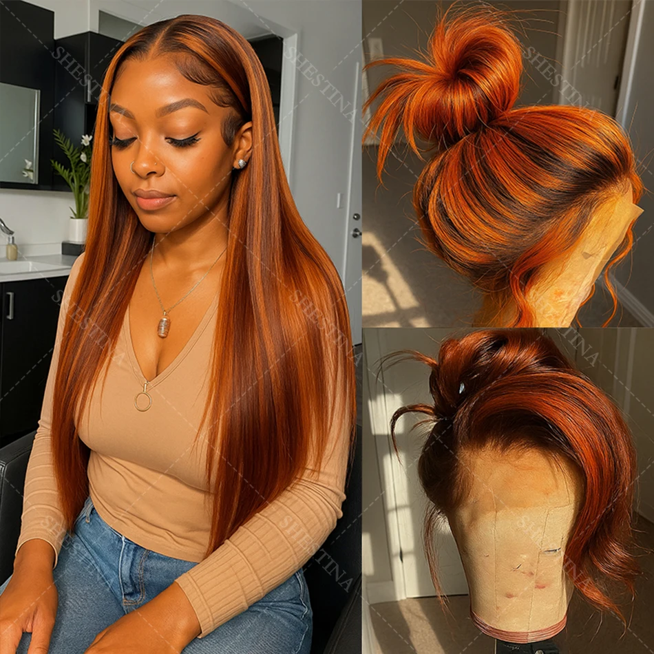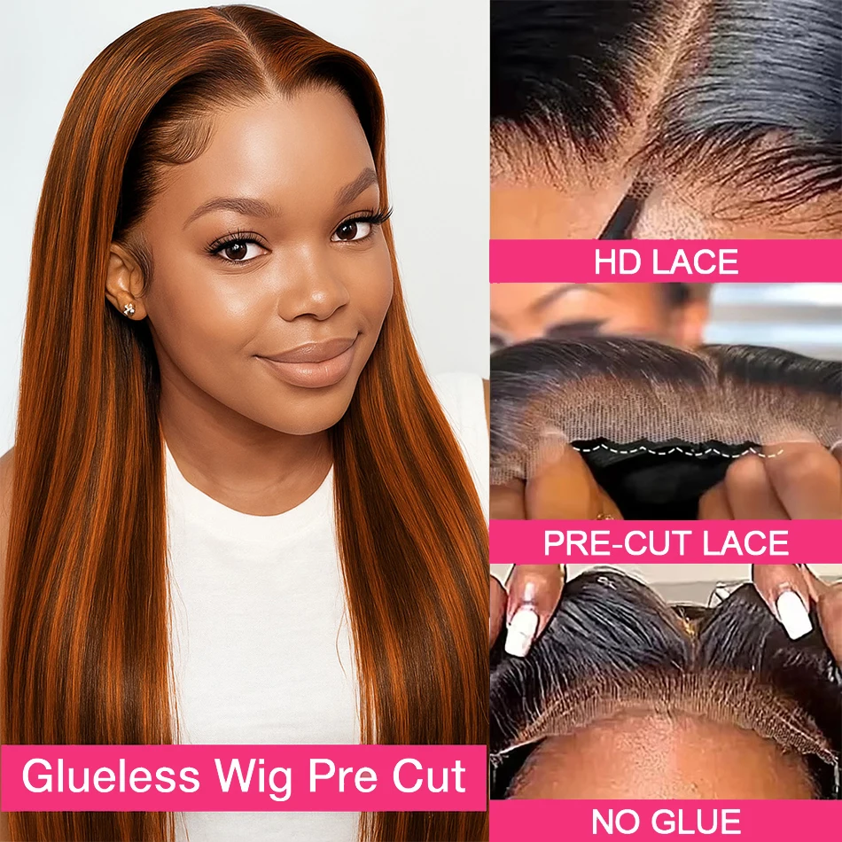 Brown Ginger Highlight Wigs Human Hair Bone Straight 5x5 Lace Frontal Glueless Pre Cut Ombre Ginger Colored Hair Wigs For Women