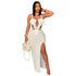 CM.YAYA Women Hemp Rope Halter Neck Stacked Ruched High Split Knit Bodycon Midi Maxi Long Dress 2025 Birthday Sexy Party Dresses