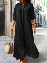 Cotton Linen Long Dress Women Long Sleeve Button Solid Color Casual Ruffles Loose Dresses Spring Autumn Comfortable Shirt Dress