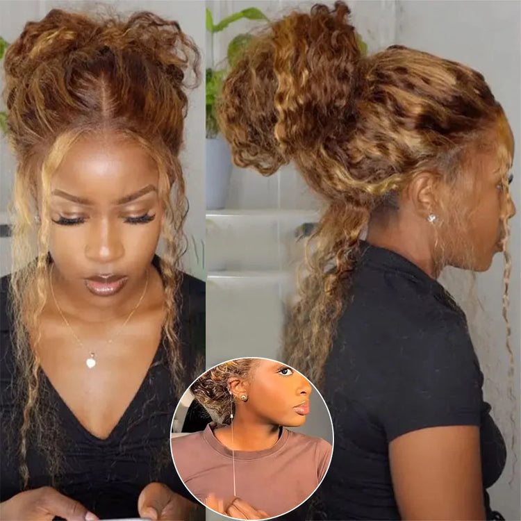 Curly 360 Lace Front Wigs Human Hair Pre Plucked P4/27 Highlight Ombre Deep Wave HD Lace Frontal Human Hair Wig With Drawstring
