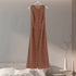 Elegant Sleeveless Long Dress Women's Slim Solid O-neck Single Breasted A-Line Dresses 2025 Summer New Ladies Fashion Robes