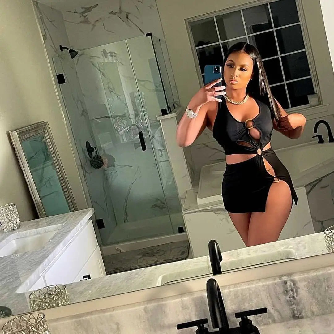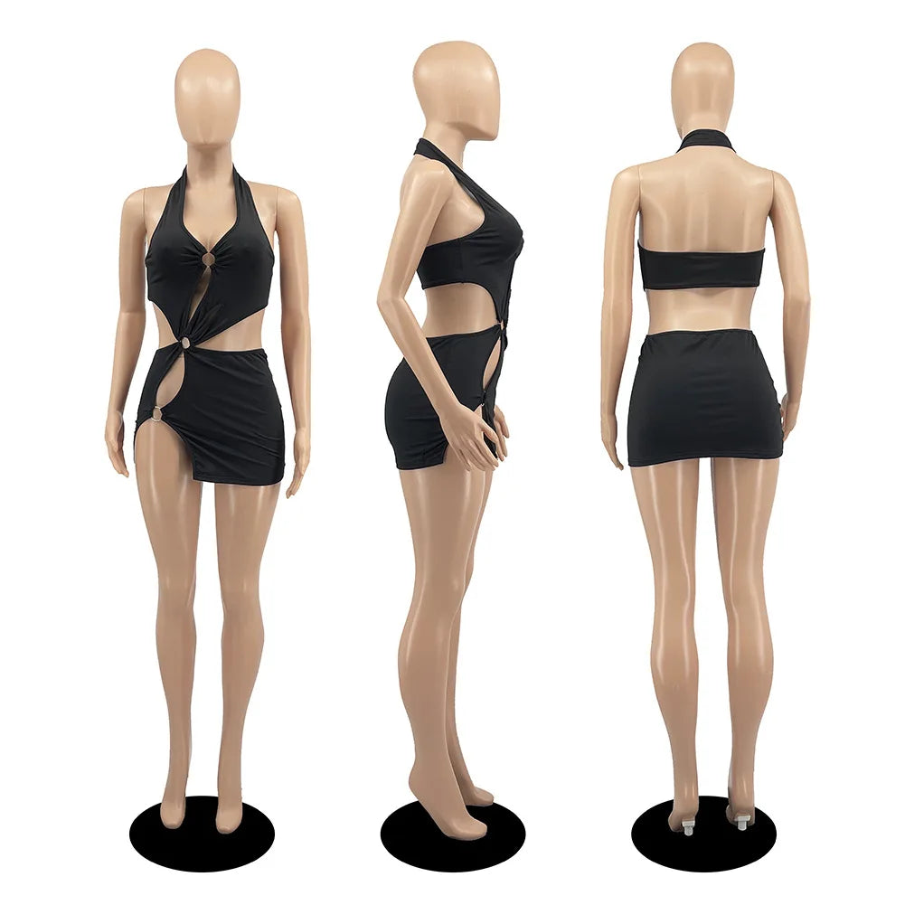 European and American women's Y2K milk silk solid color short skirt sexy sleeveless hollow out dress