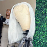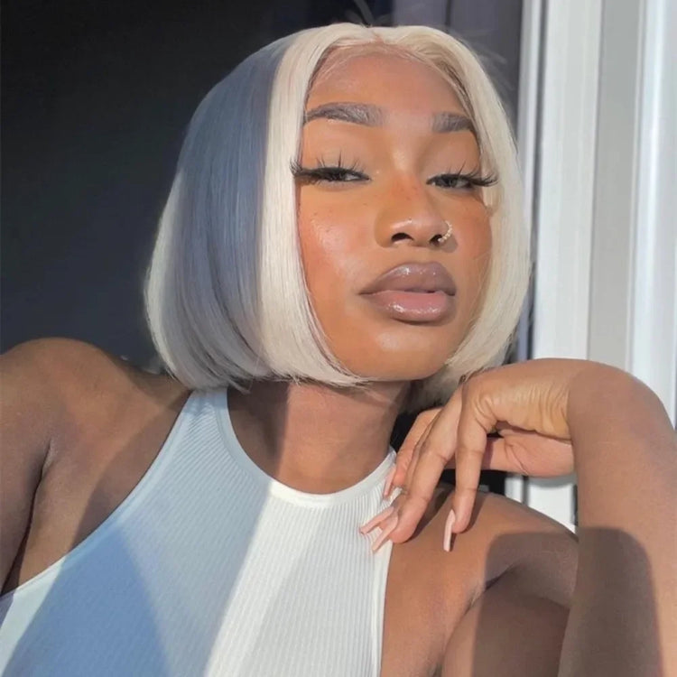 For Women White Short Human Hair Wig Ash Blonde Platinum Colored Brazilian Virgin Hair 180%60 13x4 Lace Front Human Hair Wigs