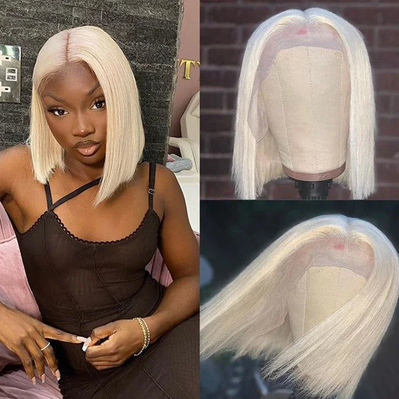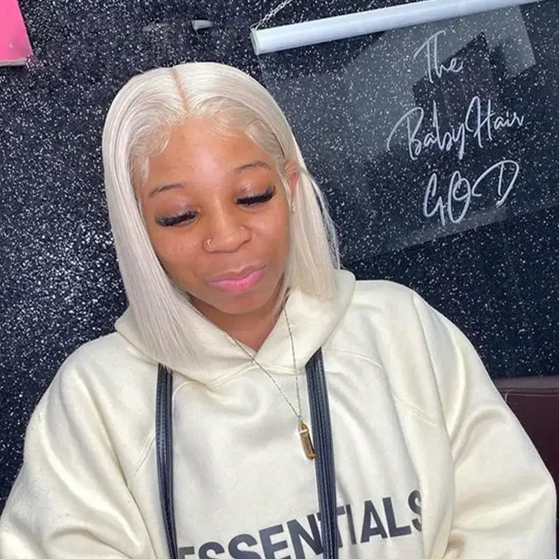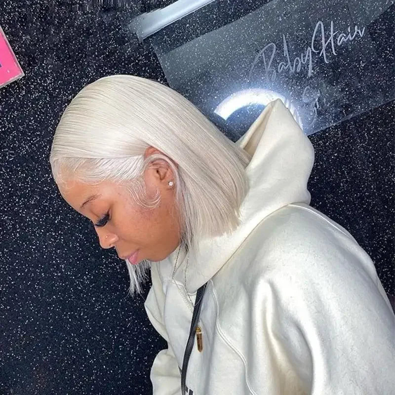 60 13x4 Lace Front Human Hair Wigs For Women White Short Human Hair Wig Ash Blonde Platinum Colored Brazilian Virgin Hair 180%