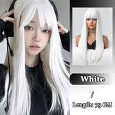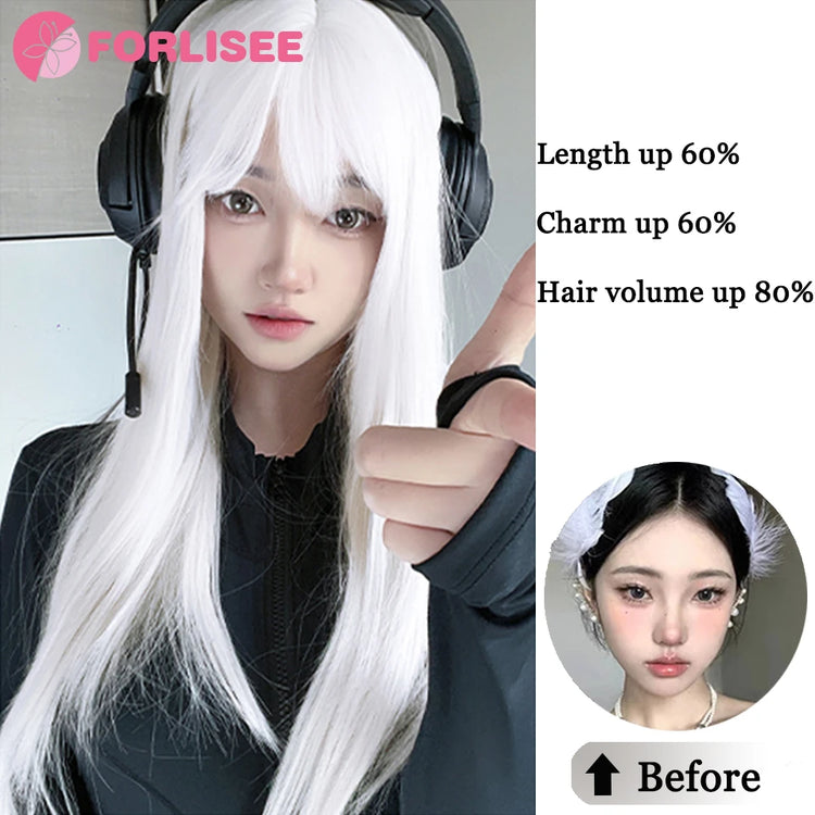 FORLISEE Synthetic White Wig Women's Long Hair Full Head Cover Lolita Japanese Cos Air Bang Long Straight Hair Wig Cover