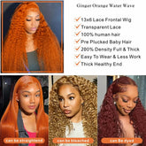 Ginger Orange Water Wave #350 Colored 13x6 13x4 Transparent Lace Front Wig Human Hair for Women Deep Curly Wigs Pre Plucked