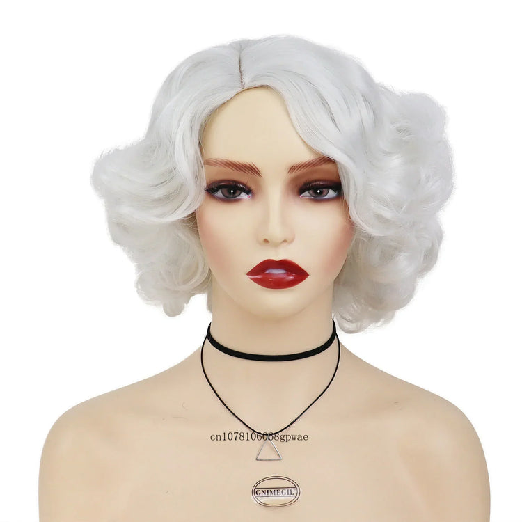 Grey White Wigs for Women Synthetic Hair Short Curly Wig Halloween Cosplay Wig Anime Costume Heat Resistant Old Ladies Wig Daily