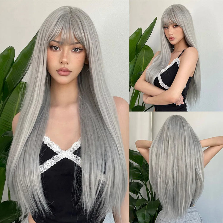 HENRY MARGU White Long Straight Synthetic Wigs for Women Colorful Cosplay Party Fake Hair with Bangs White Wig HighTemperature