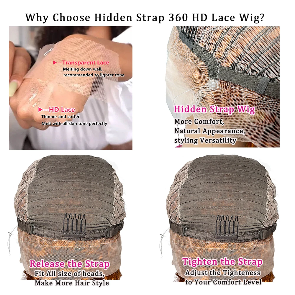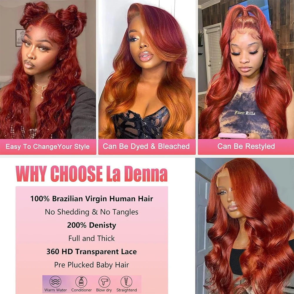 Hidden Strap Body Wave 360 Glueless Wig Human Hair Reddish Brown Pre Bleached Human Hair Wig With Drawstring Full Lace Front Wig
