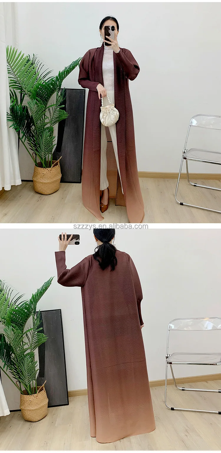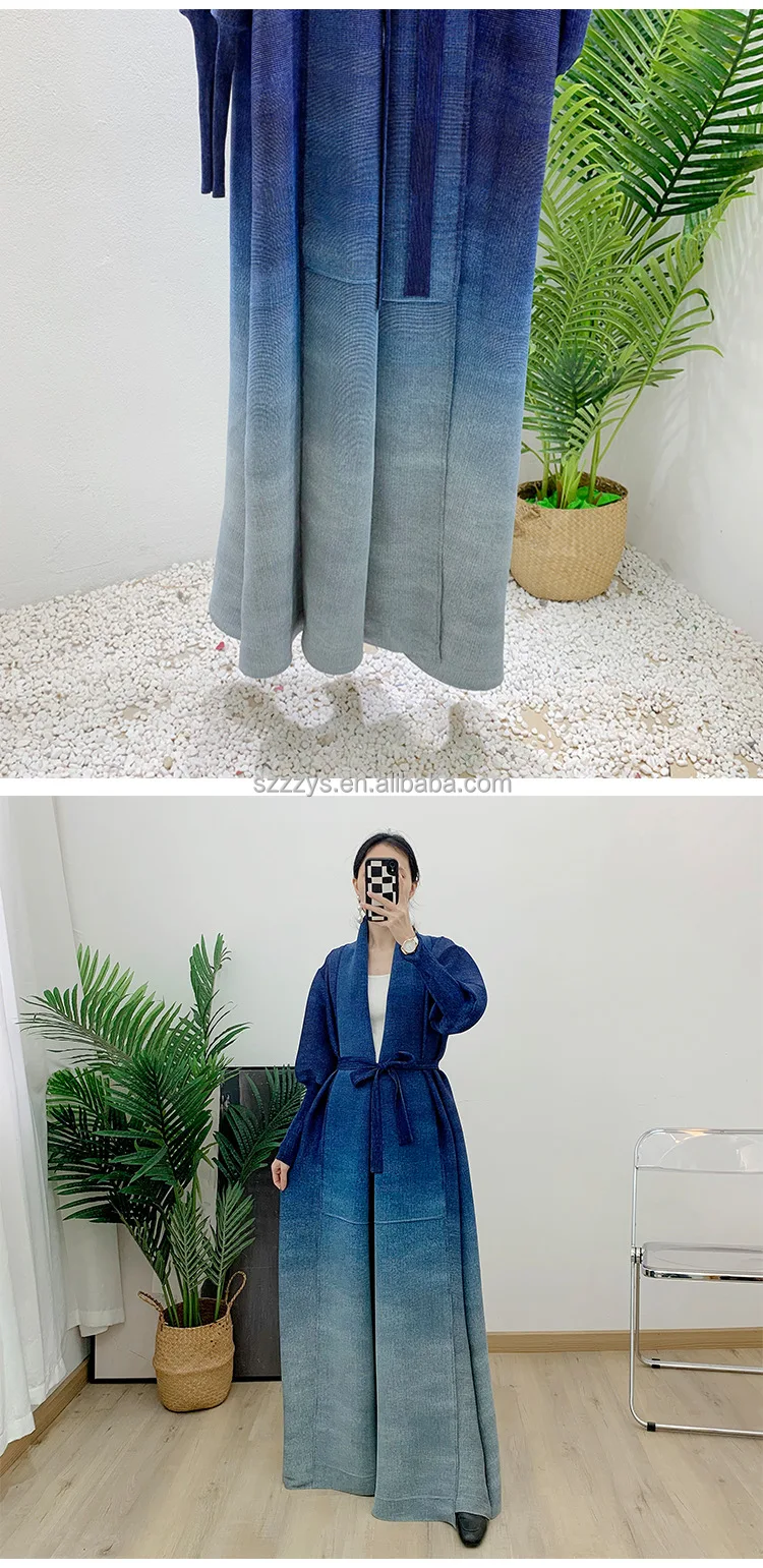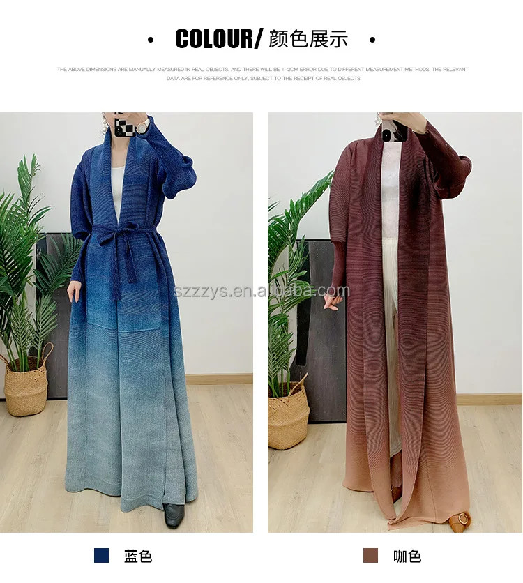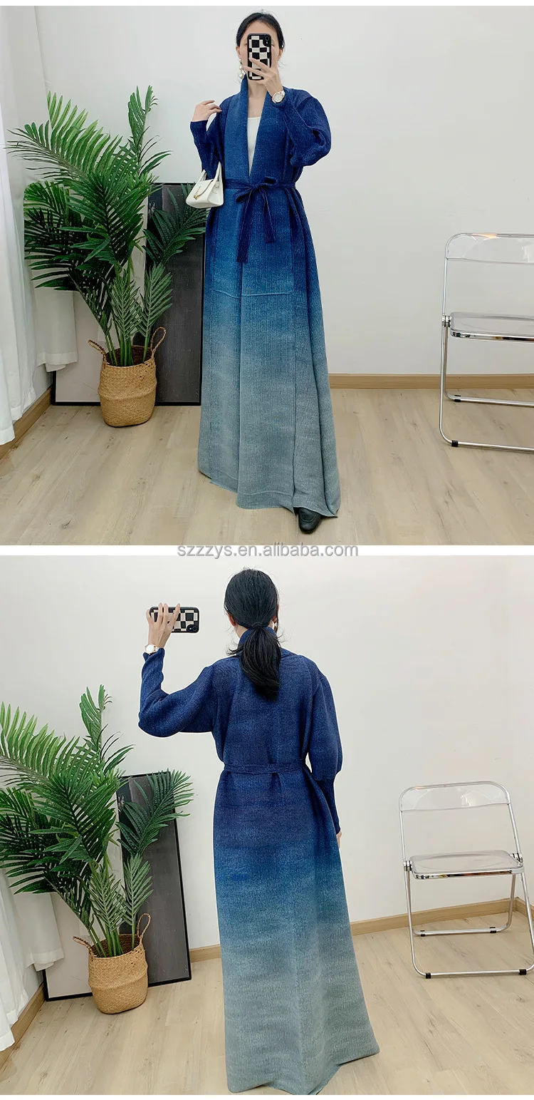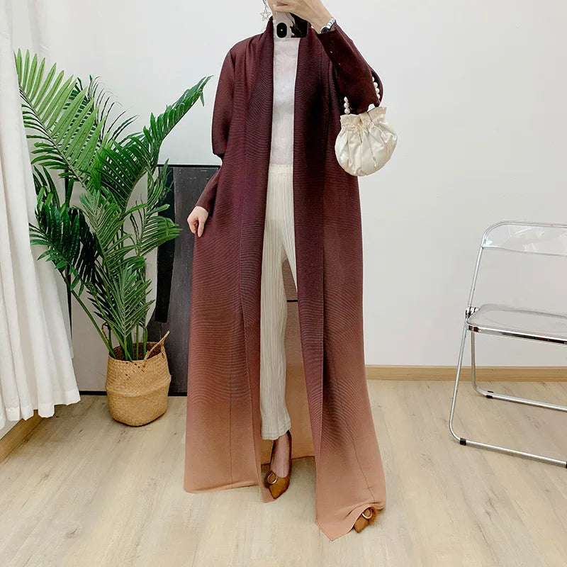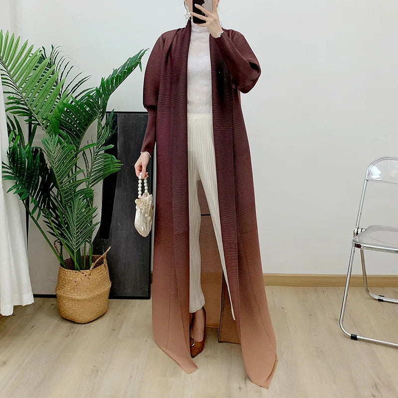 High Quality Pleated Windbreaker Women's Gradient Bat Sleeve Trench Coat Women's Belt Elegant Robe Jacket Tops Large Size
