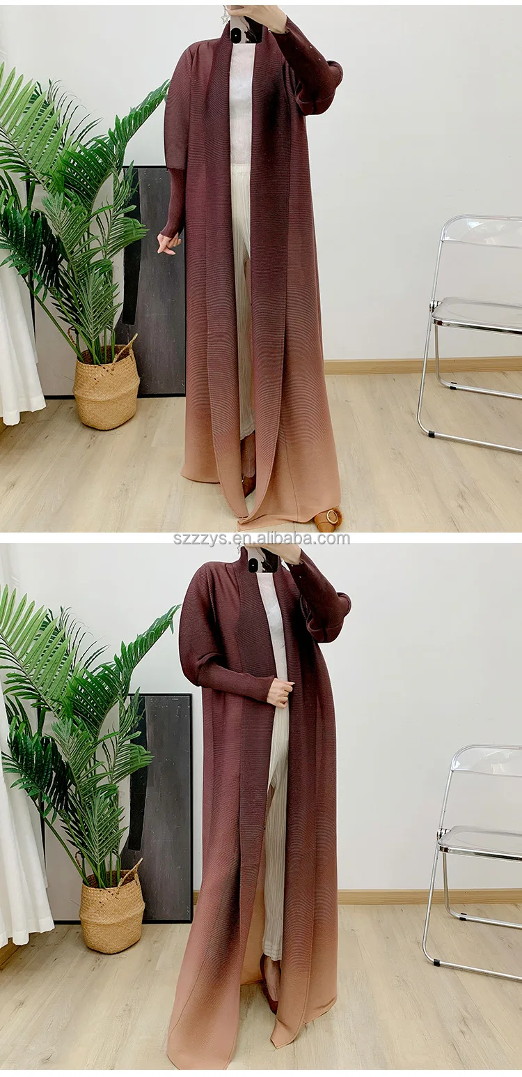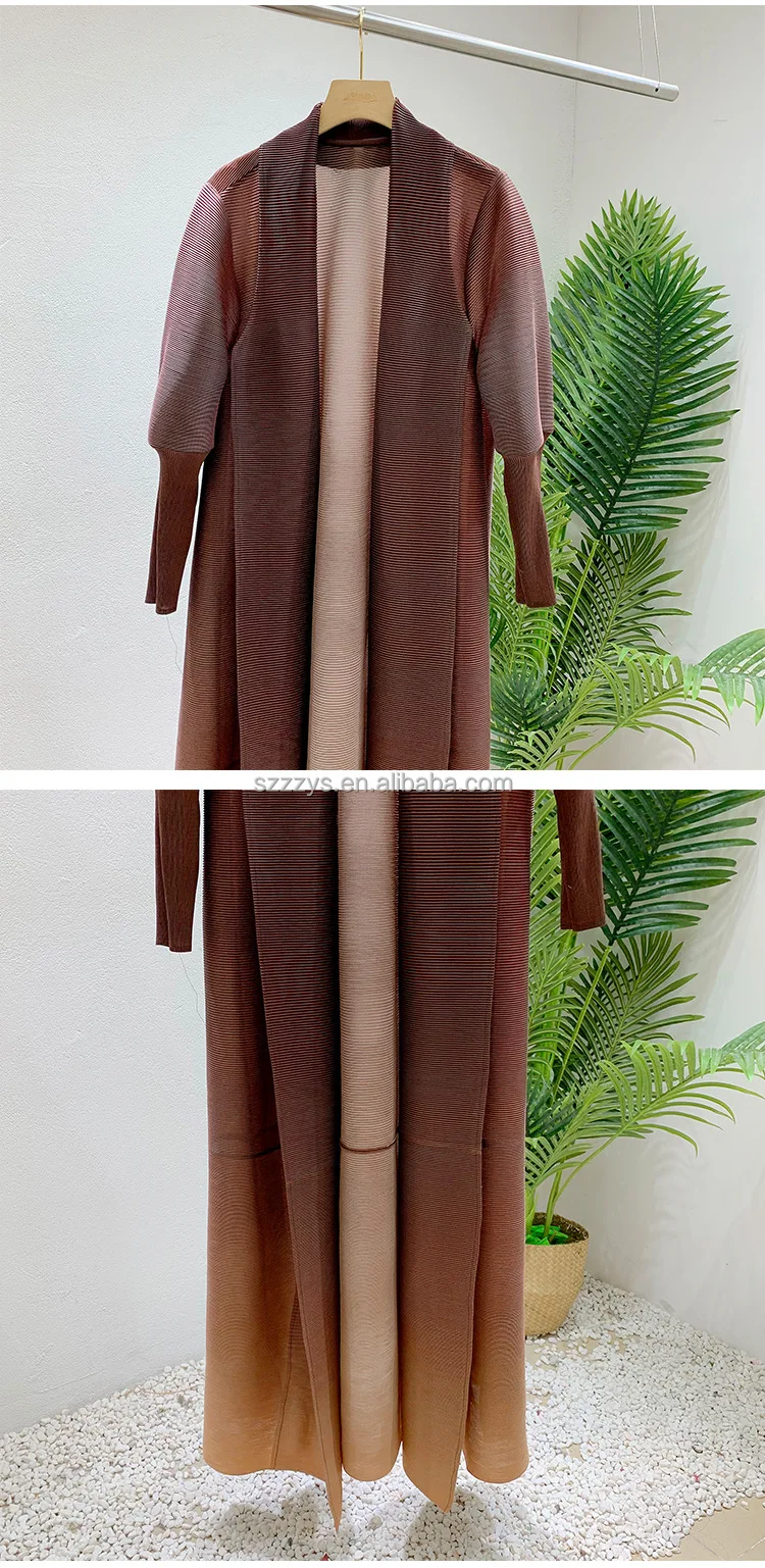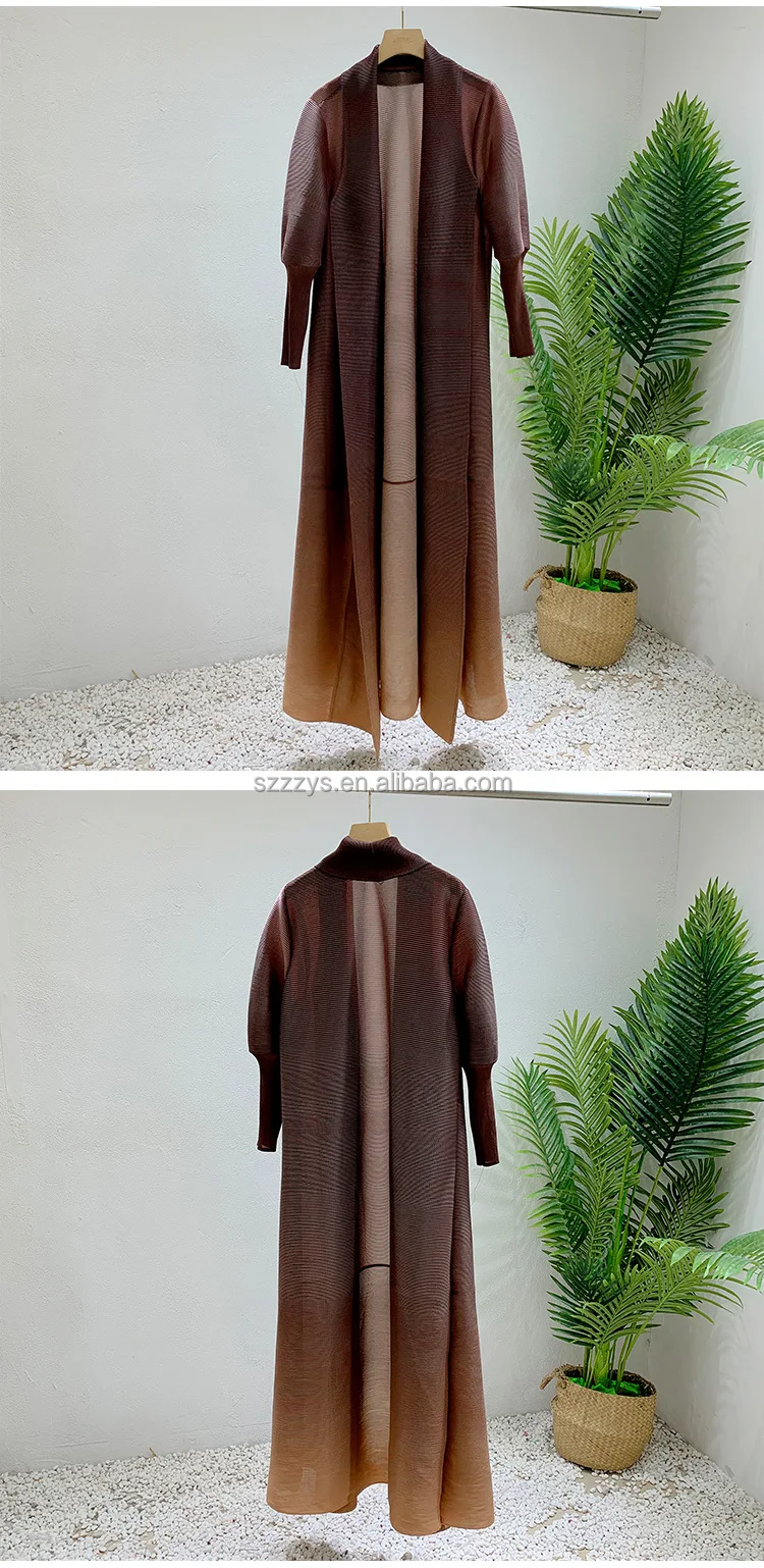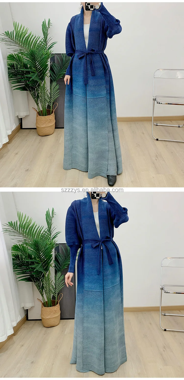 High Quality Pleated Windbreaker Women's Gradient Bat Sleeve Trench Coat Women's Belt Elegant Robe Jacket Tops Large Size
