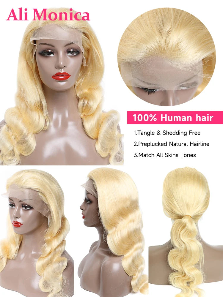 Brand Name : Ali MonicaHair Style : 13x4/ 13x6/ 360/ Full Lace Body Wave Lace Human Hair Wigs