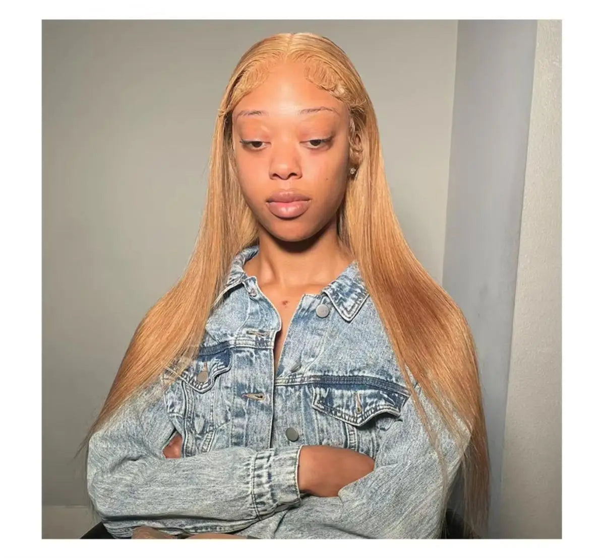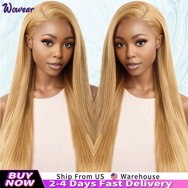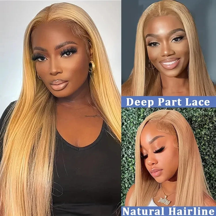 Honey Blonde Wigs Human Hair Bone Straight Wigs 13x6 HD Transparent Lace Front Human Hair Wigs #27 Honey Blonde Colored Wig