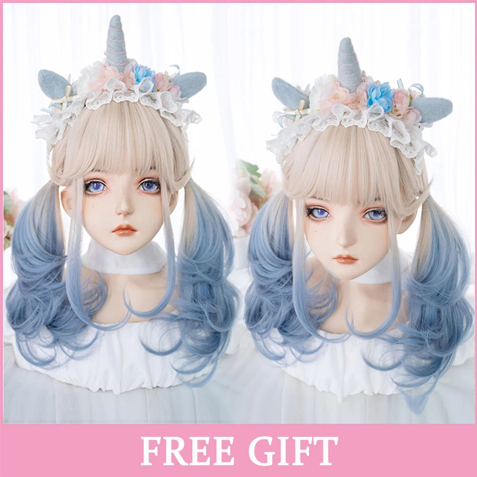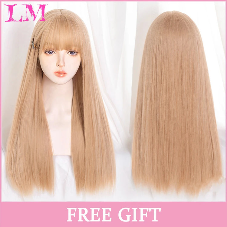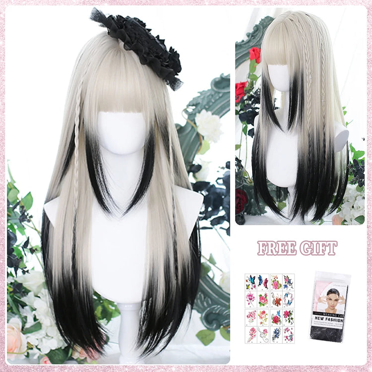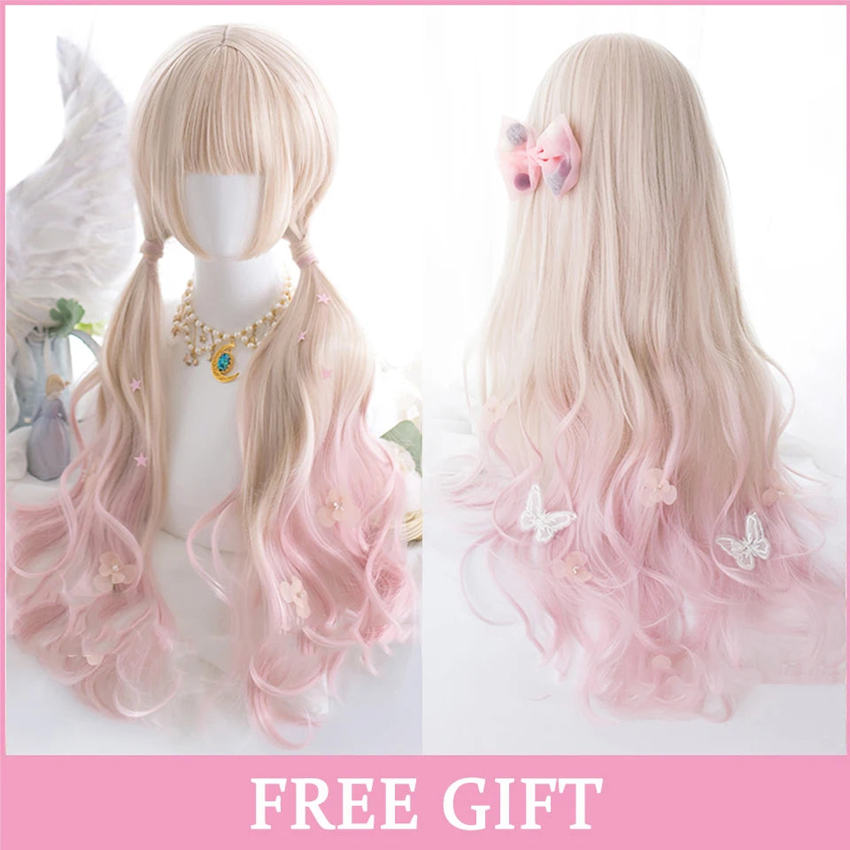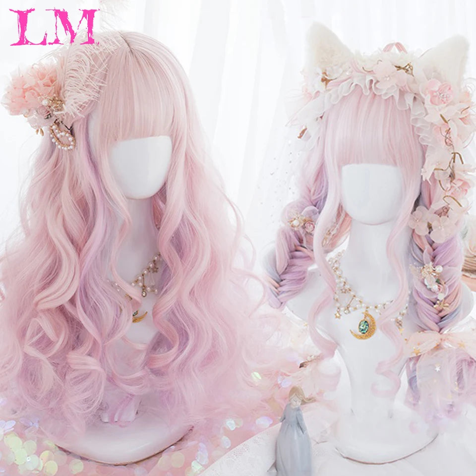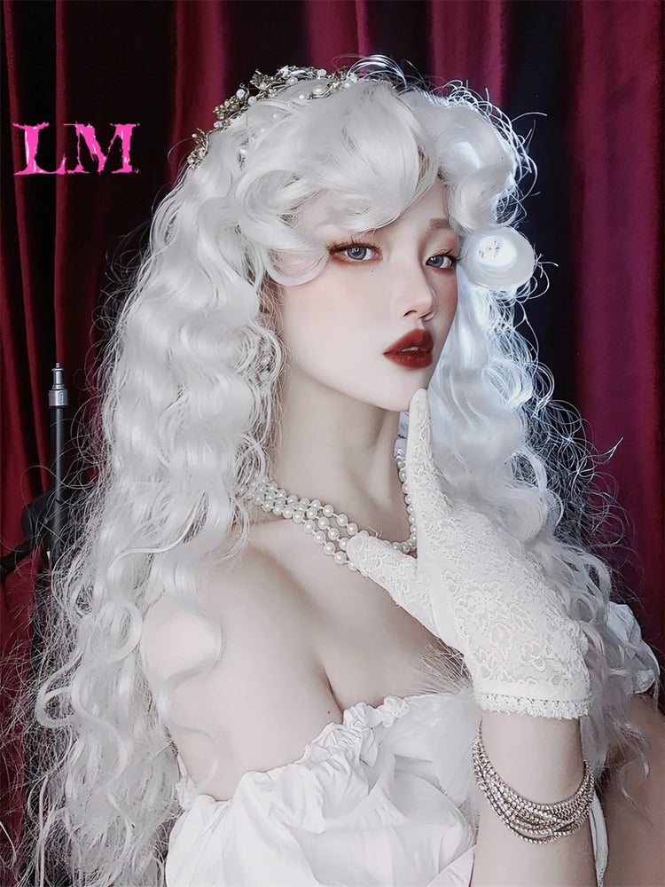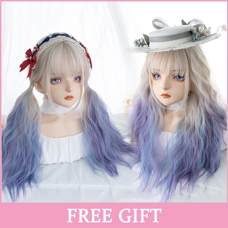 LM Long Body Wave Ombre white Cosplay Wigs Heat Resistant Synthetic Wigs Middle Part Natural Lolita Wigs For WomW