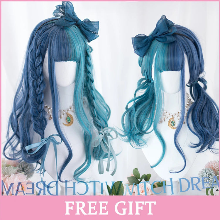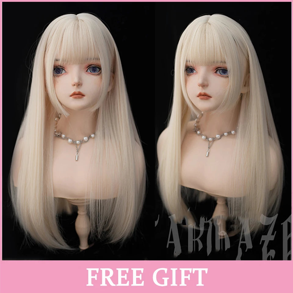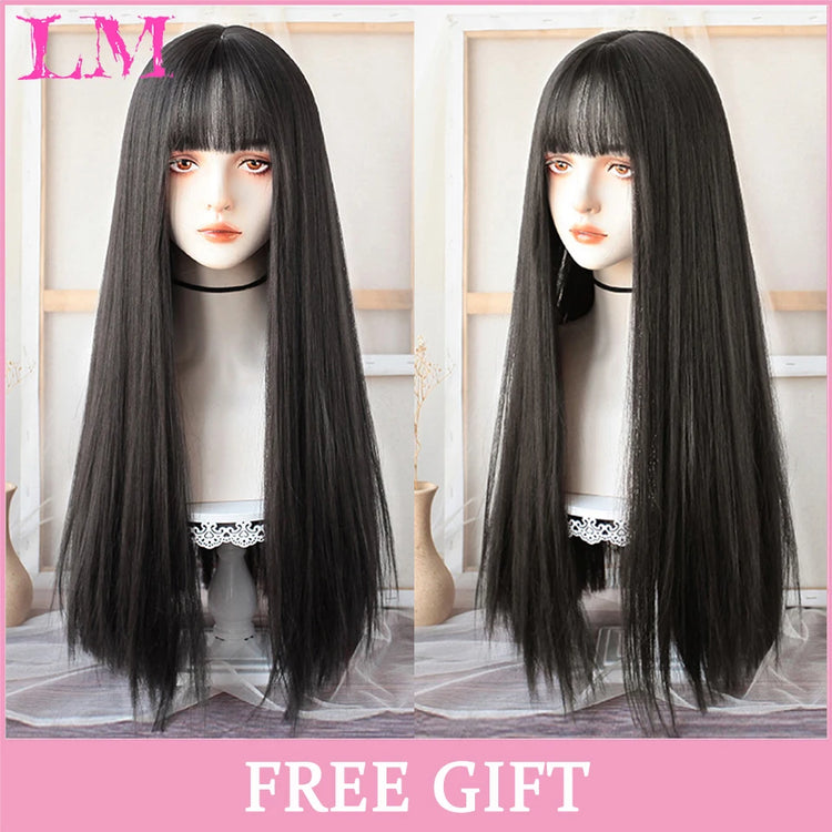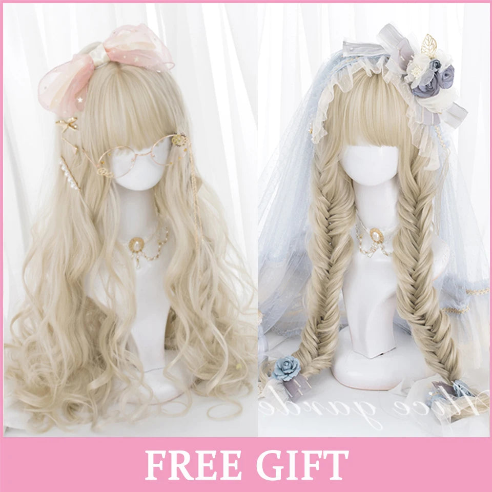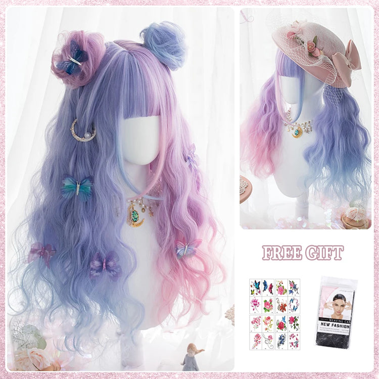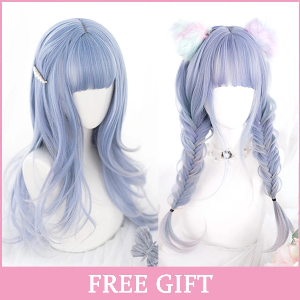 LM Long Body Wave Ombre white Cosplay Wigs Heat Resistant Synthetic Wigs Middle Part Natural Lolita Wigs For WomW
