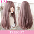 LM White Ombre Black Synthetic Wig for Women Long Curly Wave Wigs with Bangs Cosplay Party Heat Resistant Hair
