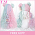 LM White Ombre Black Synthetic Wig for Women Long Curly Wave Wigs with Bangs Cosplay Party Heat Resistant Hair