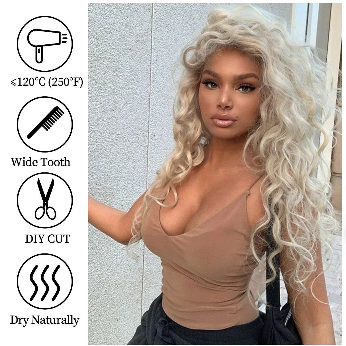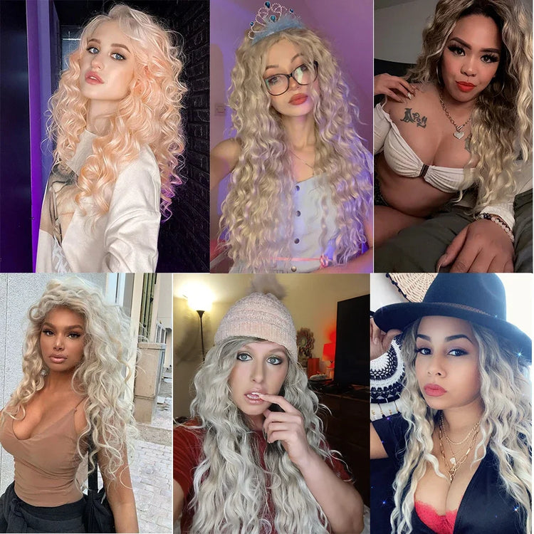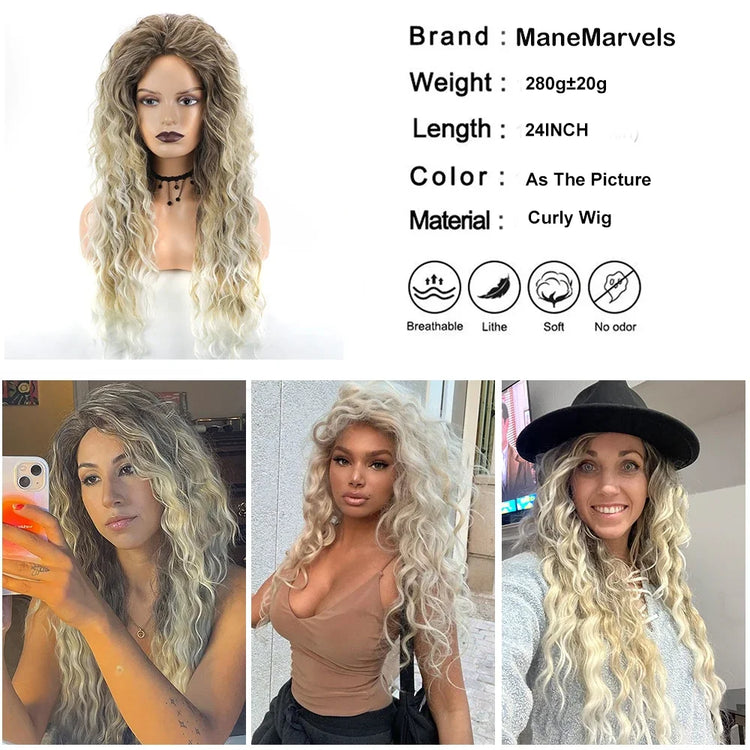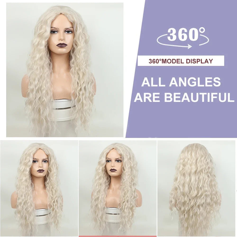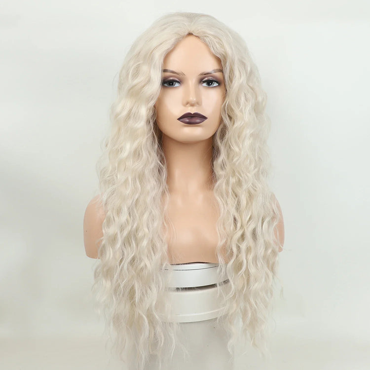Long Fluffy Curly Hair Wig 24 Inch Natural Wave Wigs for Women Cosplay White Ginger Synthetic Curly Wig Daily Use Heat Resistant