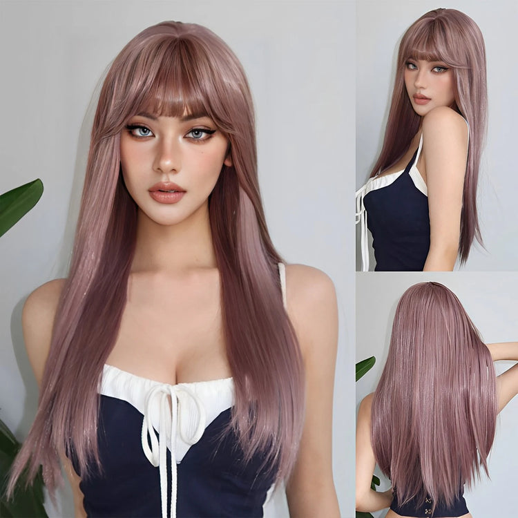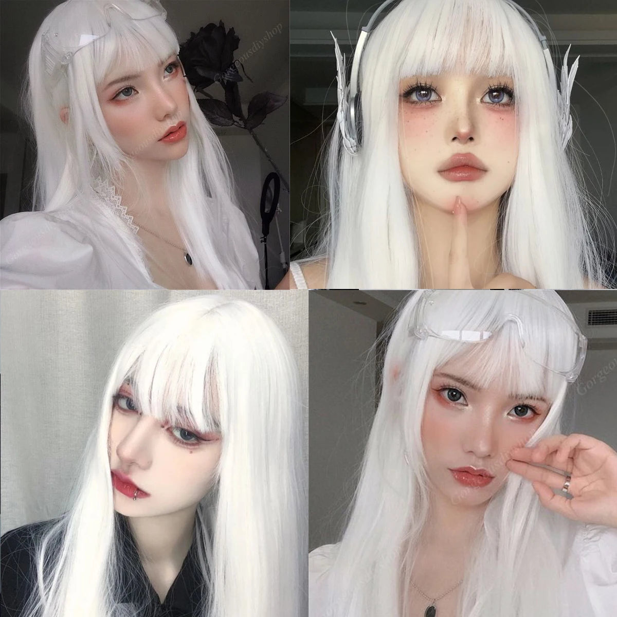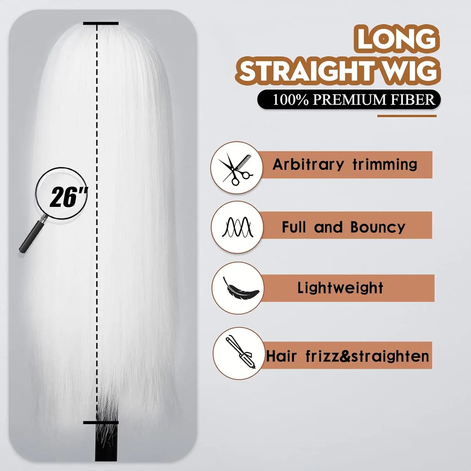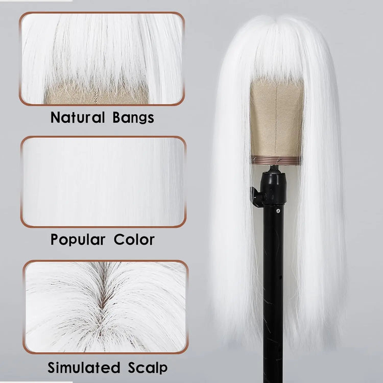 LOUIS FERRE Straight White Synthetic Wigs for White Women Long White Natural Hair Wigs with Bangs Heat Resistant Wigs for Daily