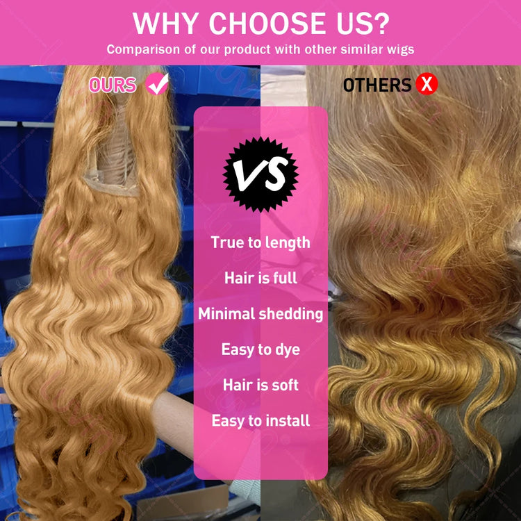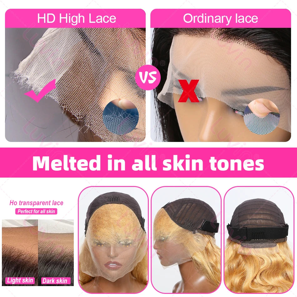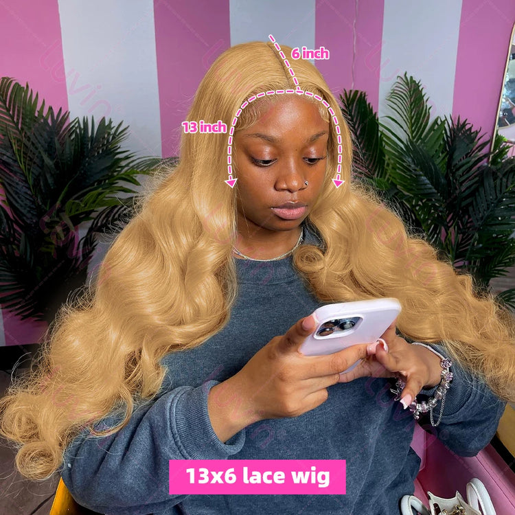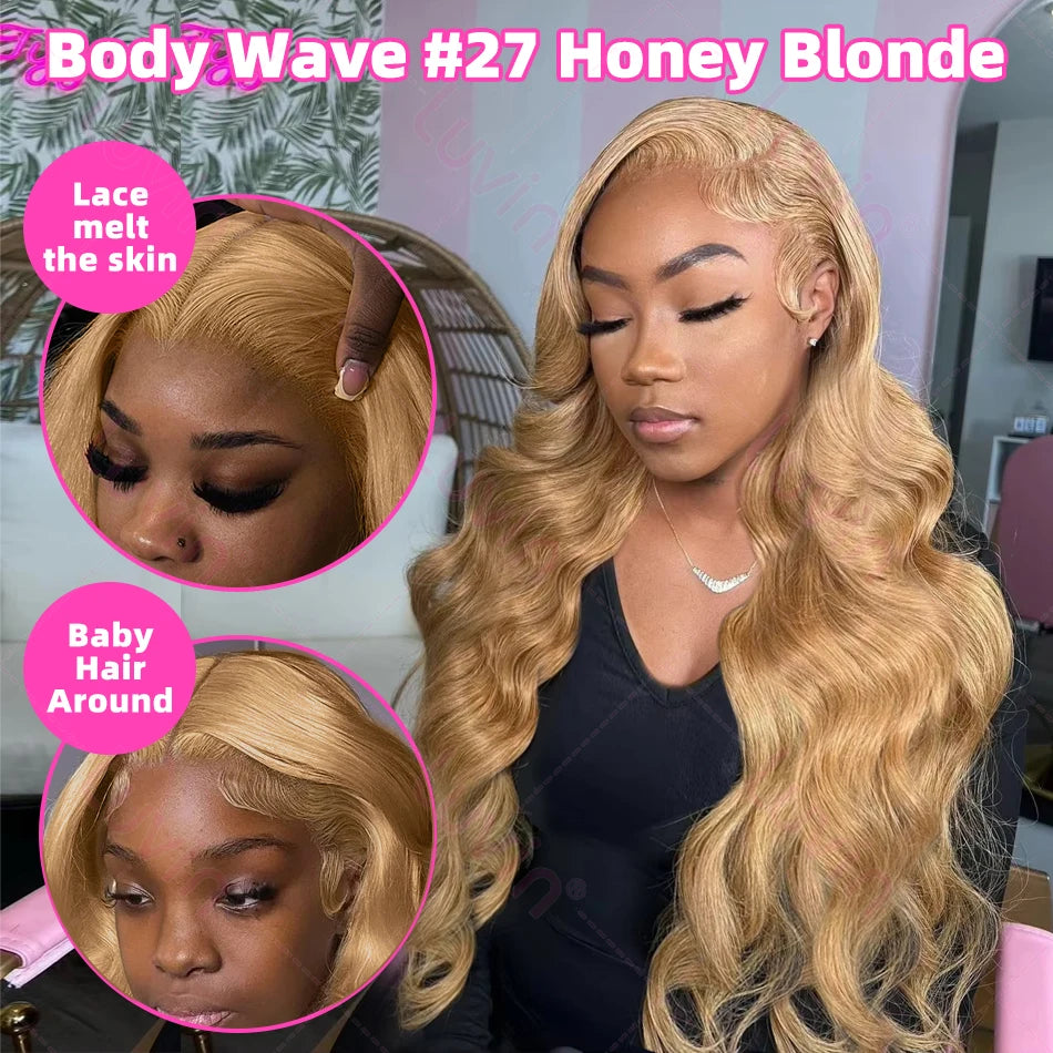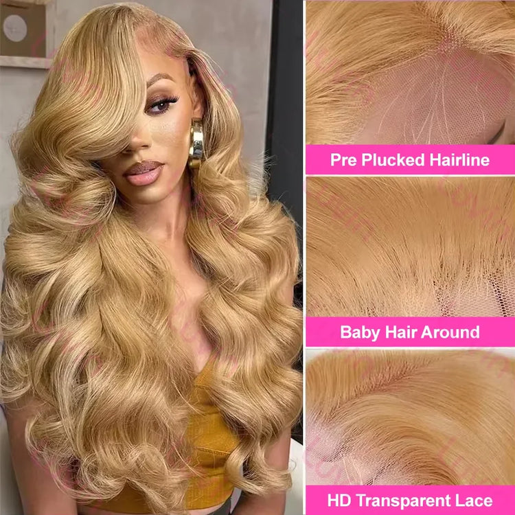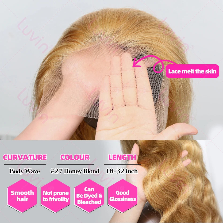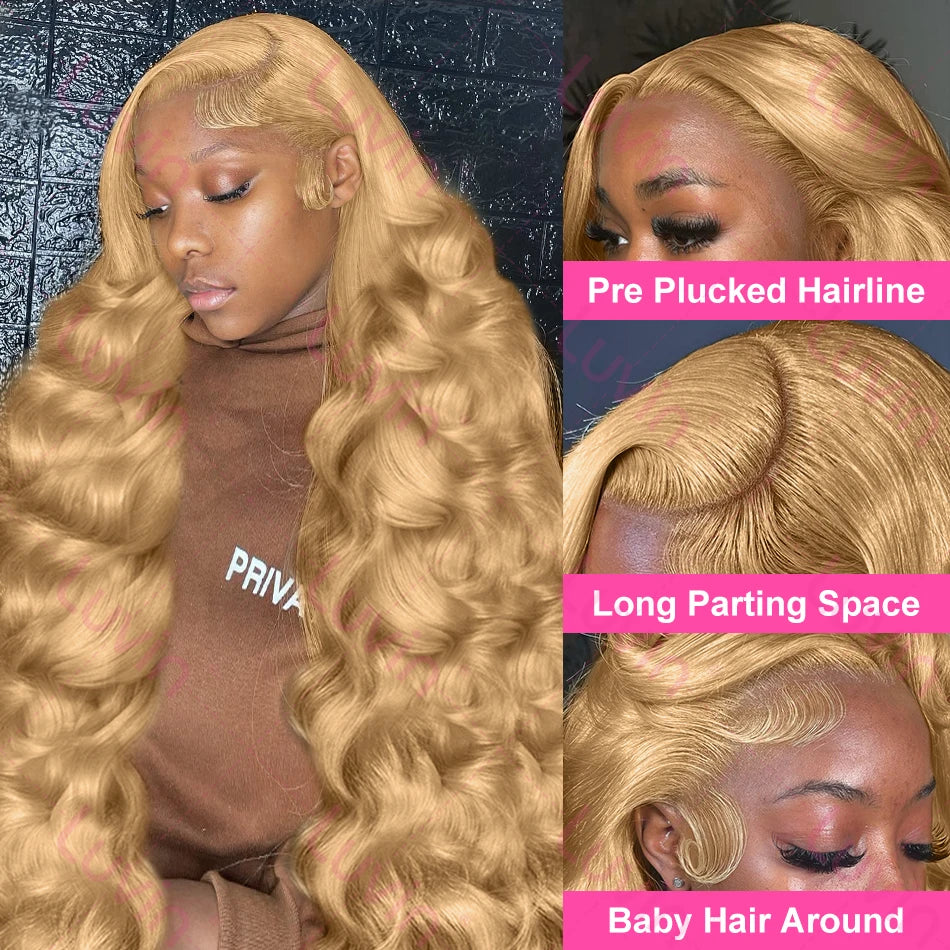 Luvin 30 32 Inch Body Wave #27 Honey Blonde 13x6 HD Transparent Lace Front Wigs Indian 13x4 Lace Frontal Human Hair Wig Colored