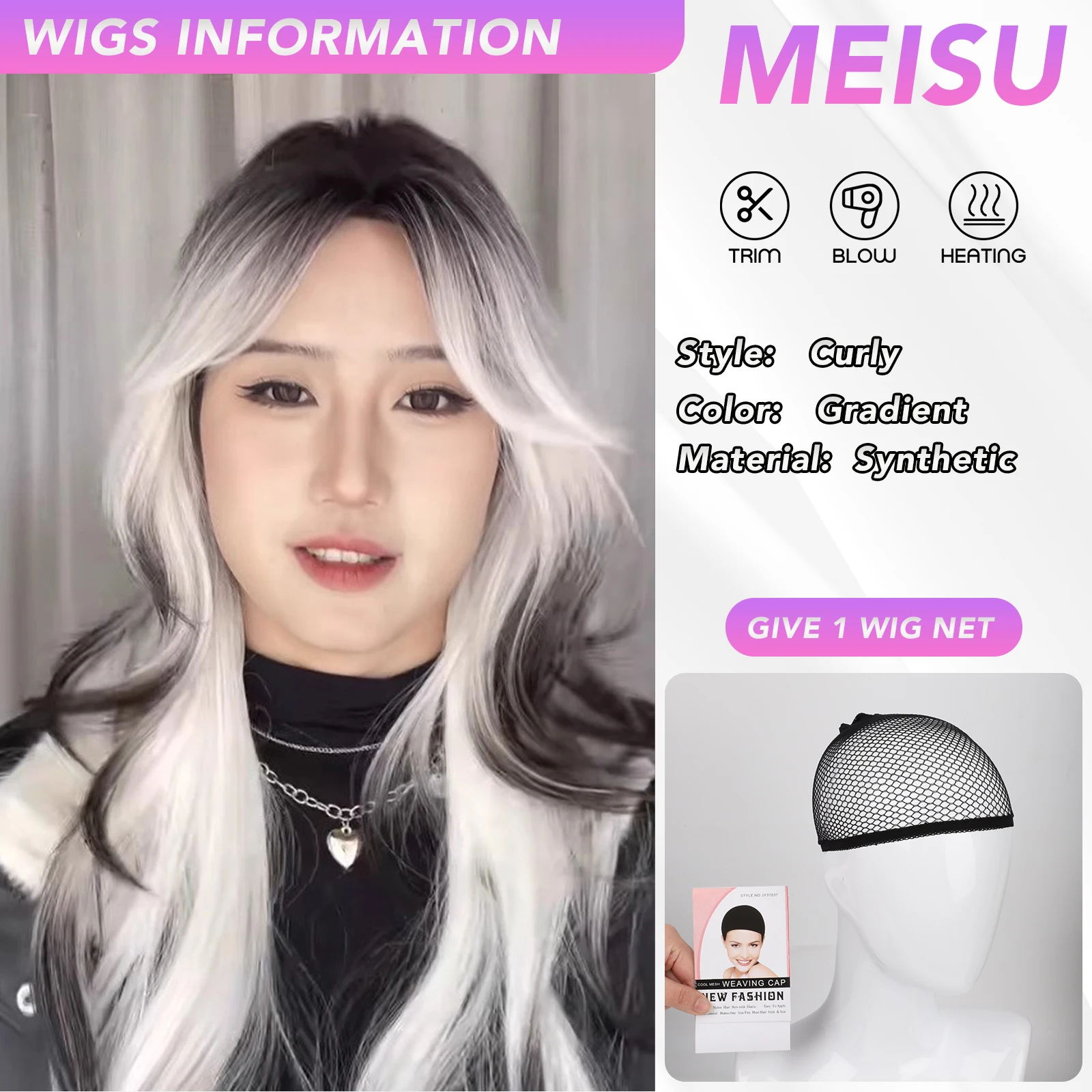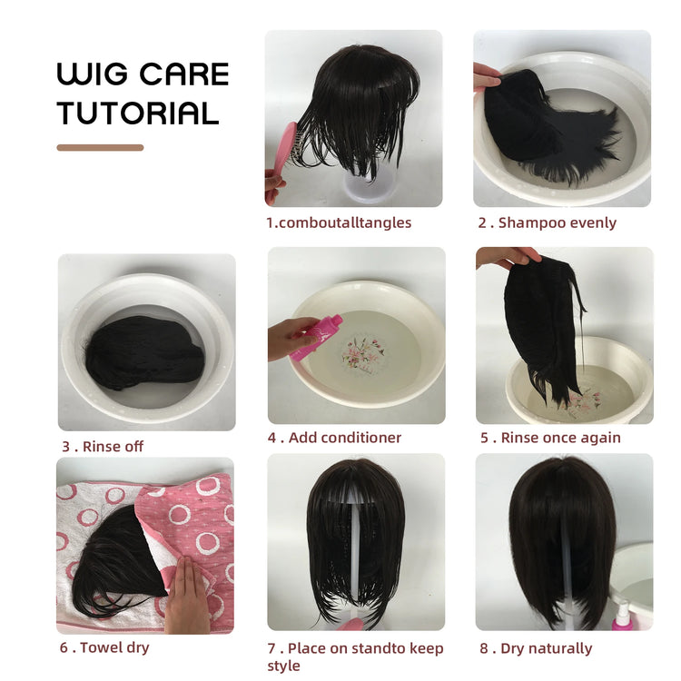 Our wig is a synthetic wig with an elastic buckle inside, suitable for different head circumferences; Wigs and bangs can be trimmed according to personal preferences.