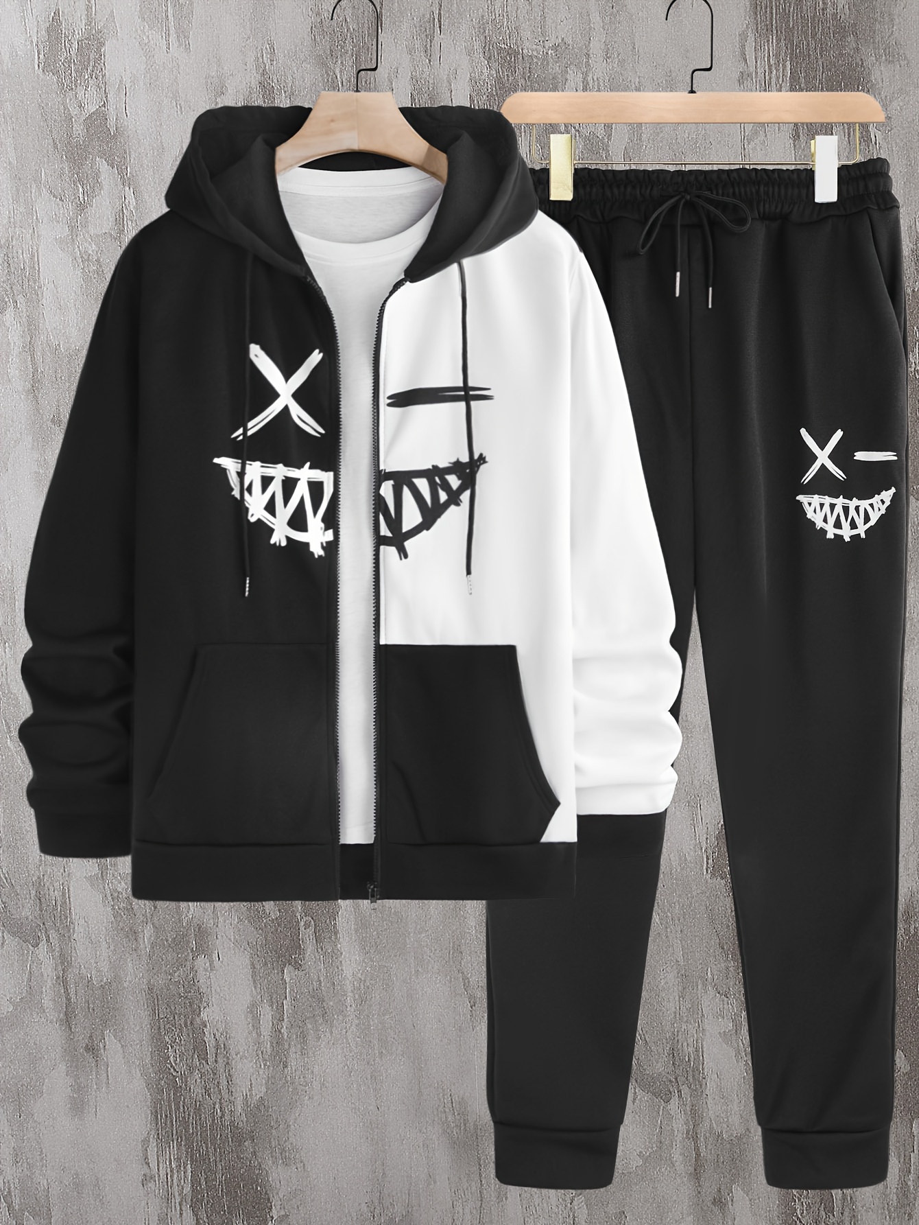 Men's Color Block 2Pcs Outfits, Casual Hoodies