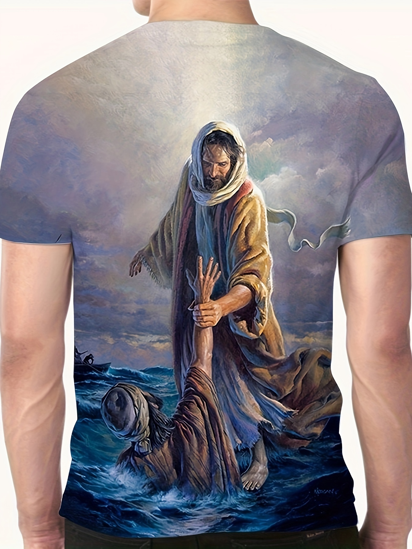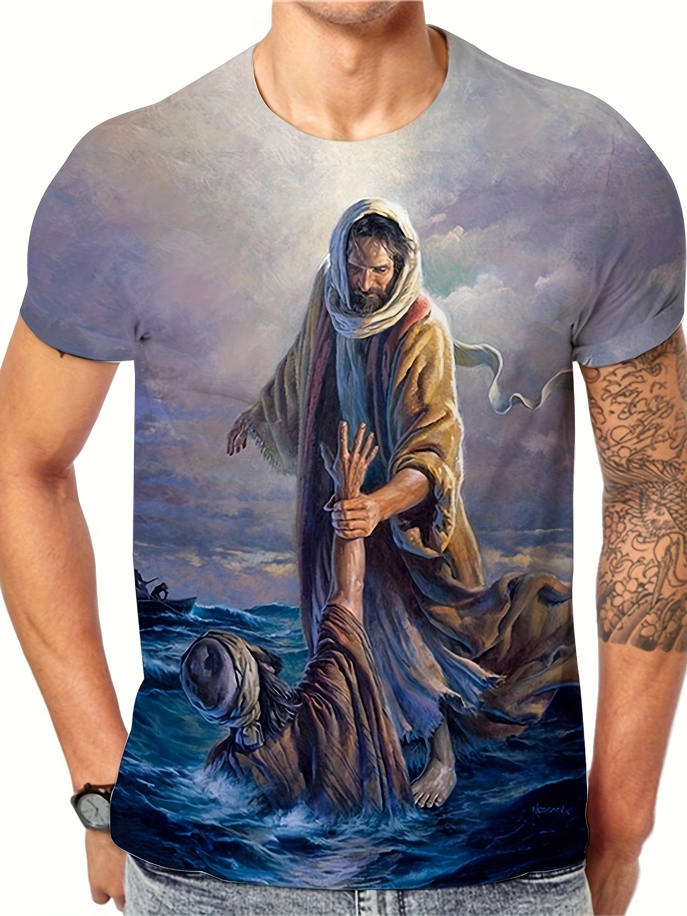 Men's Scenic Print T-shirt, Casual Short Sleeve Crew Neck Tee, Men's Clothing For Outdoor