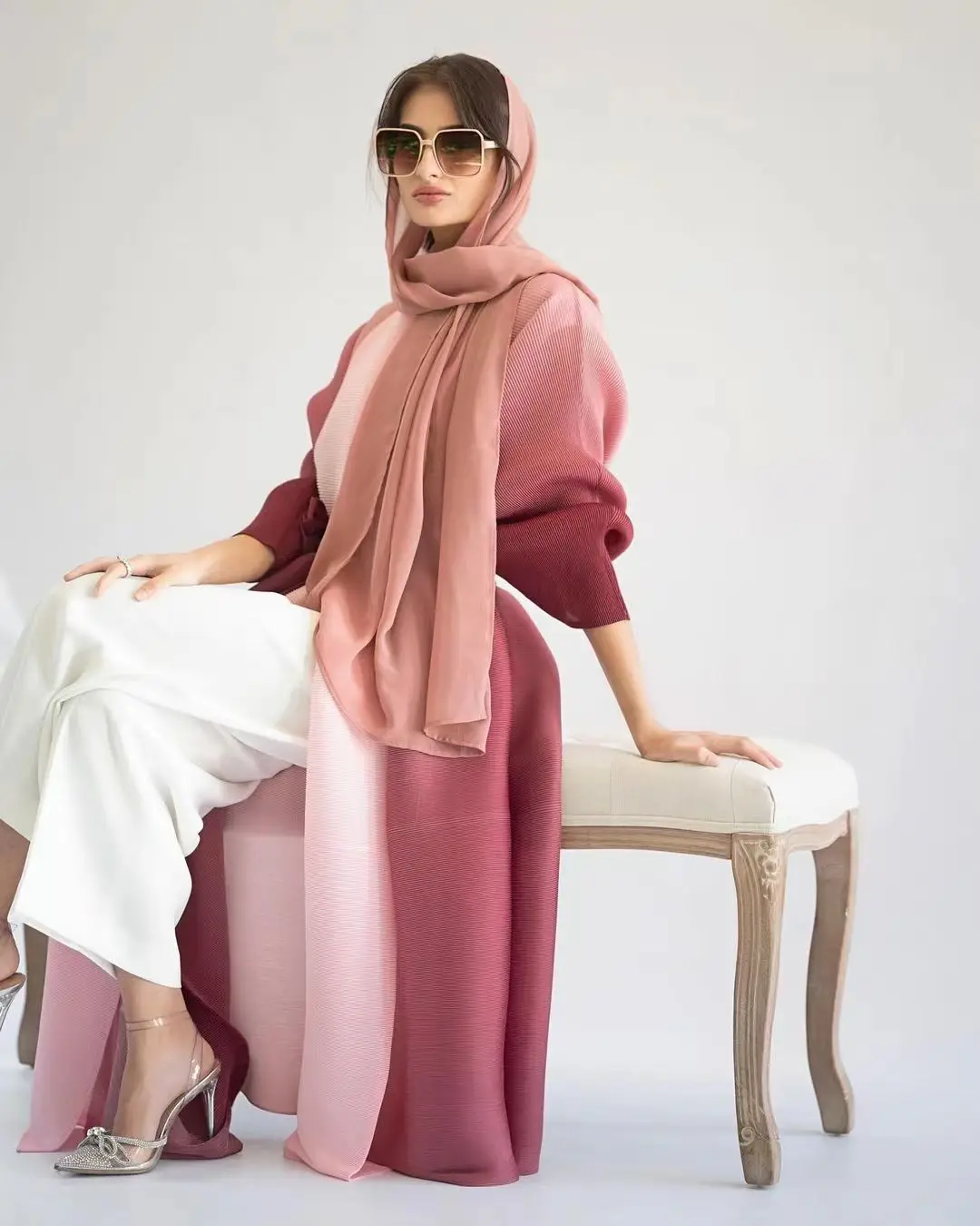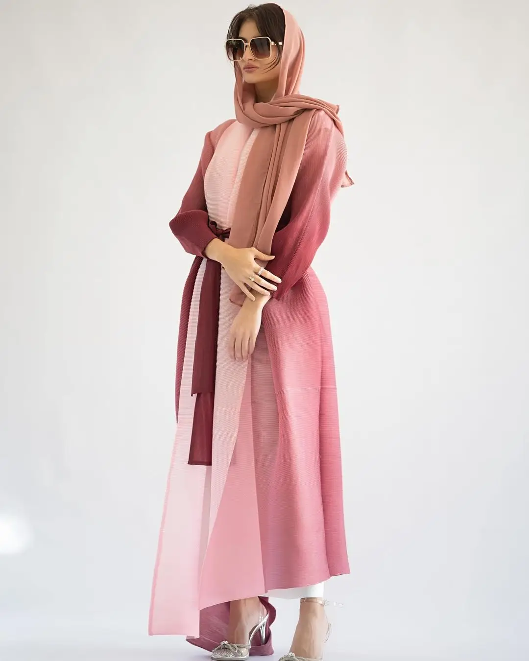 Miyake Folds 2024 Summer Loose Plus-size Temperament Sunscreen Women Wear A Stylish Gradual Color Scarf Trench Coat
