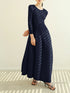 Miyake Pleated Long Sleeve Flower Bud Dress 2023 Spring Lantern Long Casual Elegant Dresses Dubai Abaya Women Designer Clothes