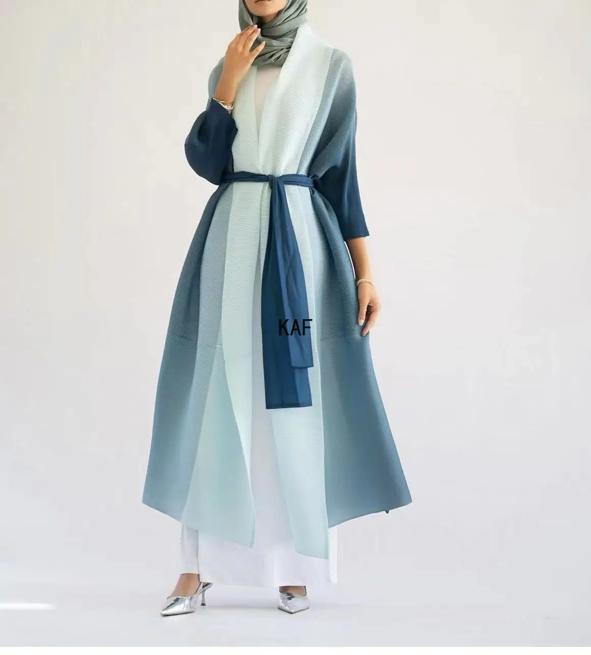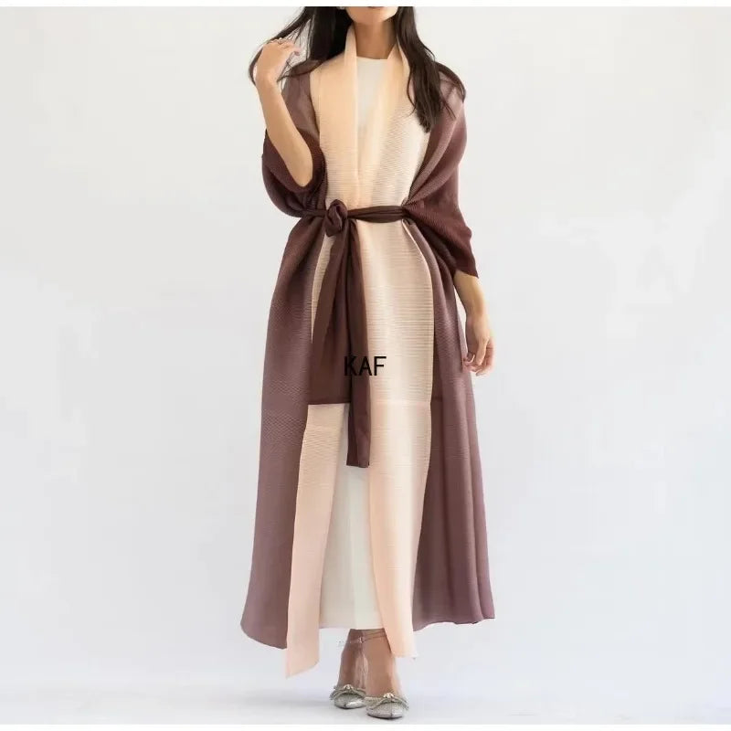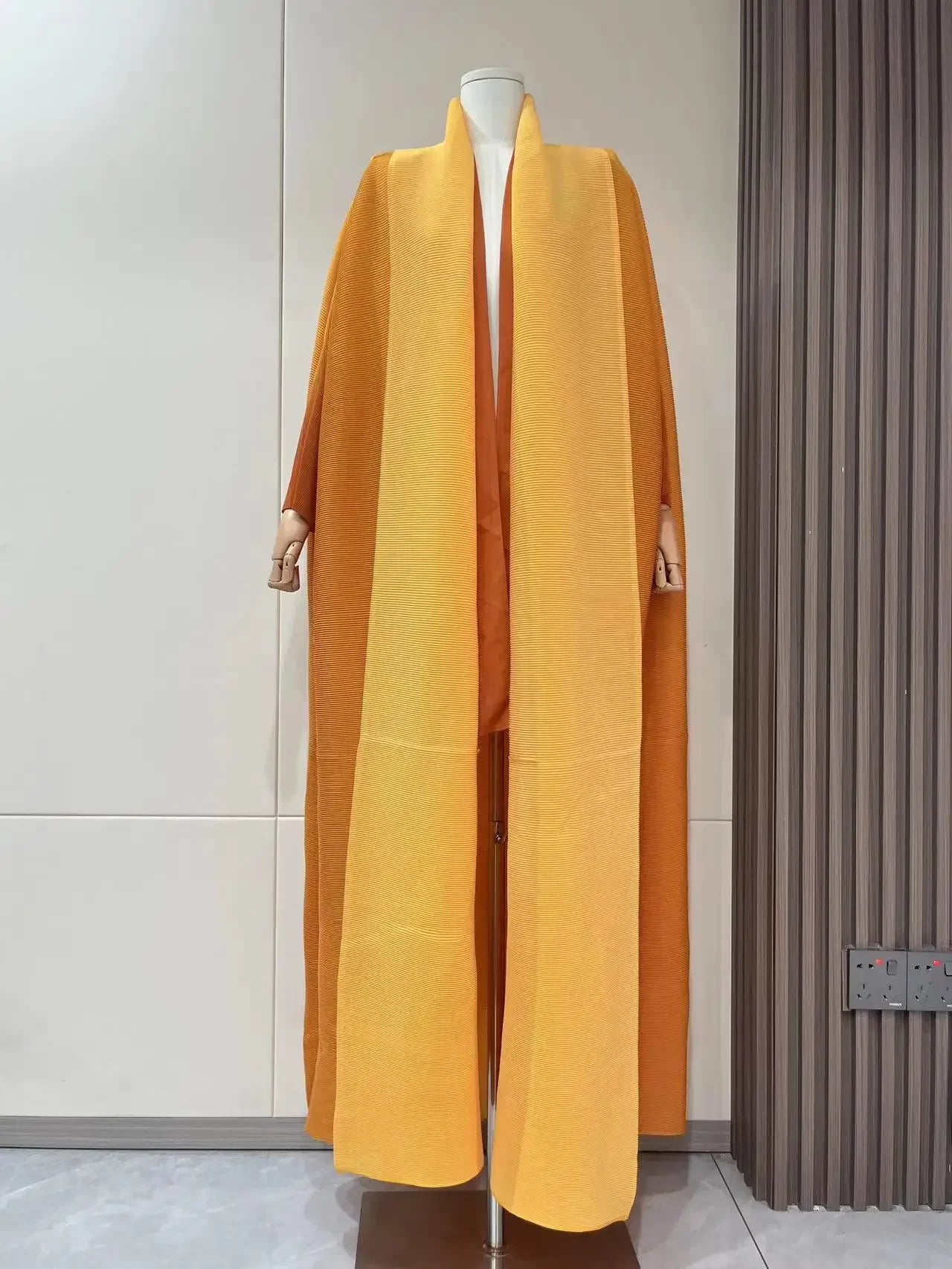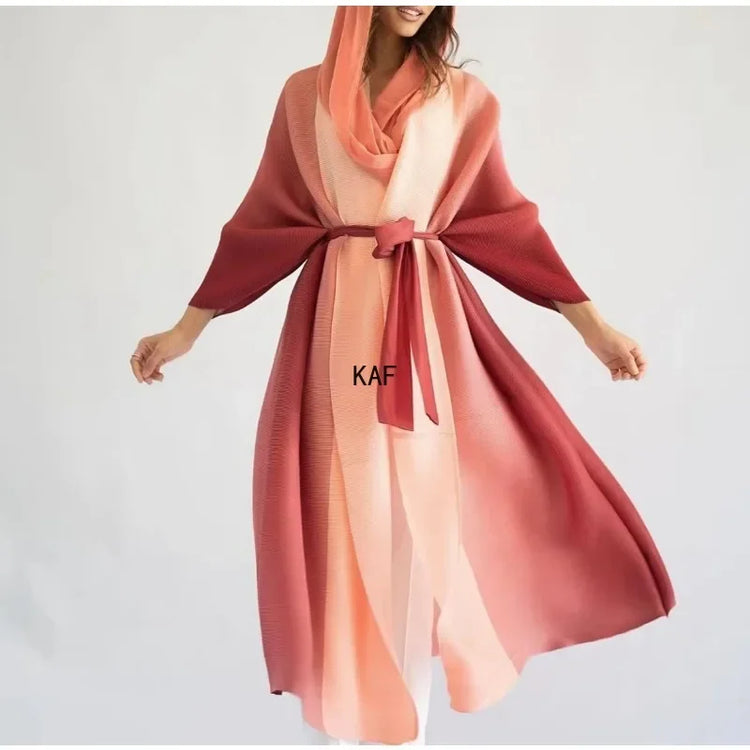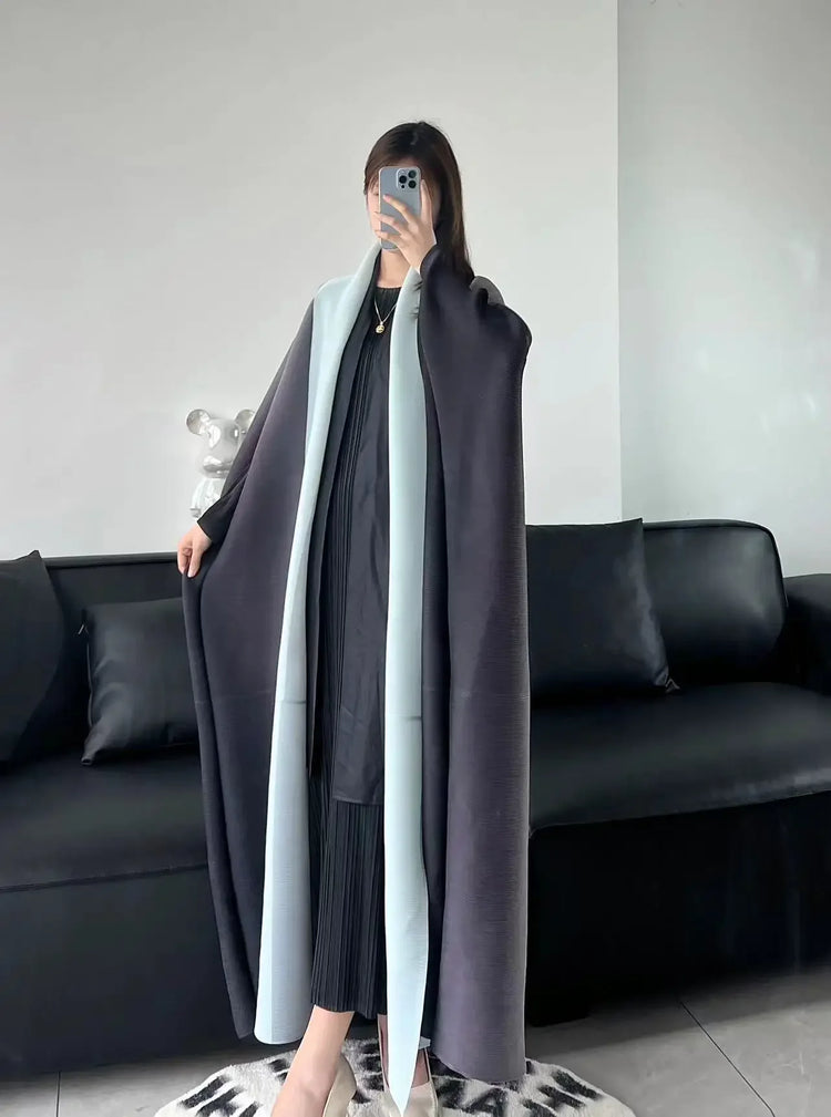Miyake Women's Cardigan Wool Sweater Elegant Loose Plus Size Gradient Pleated Fold Collar Bat Windproof Strap Lace 55 Inches