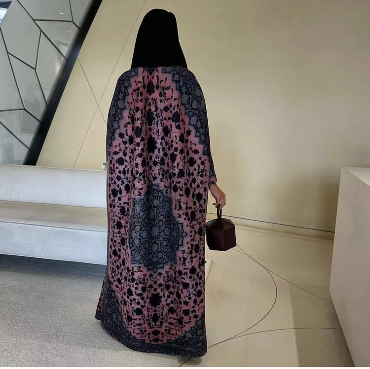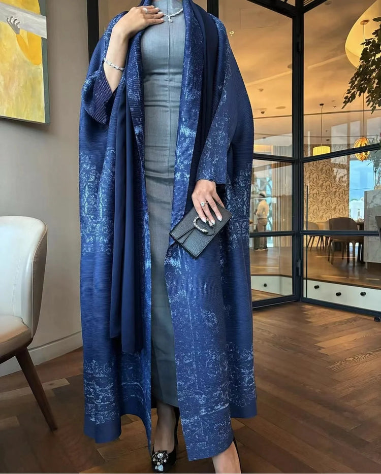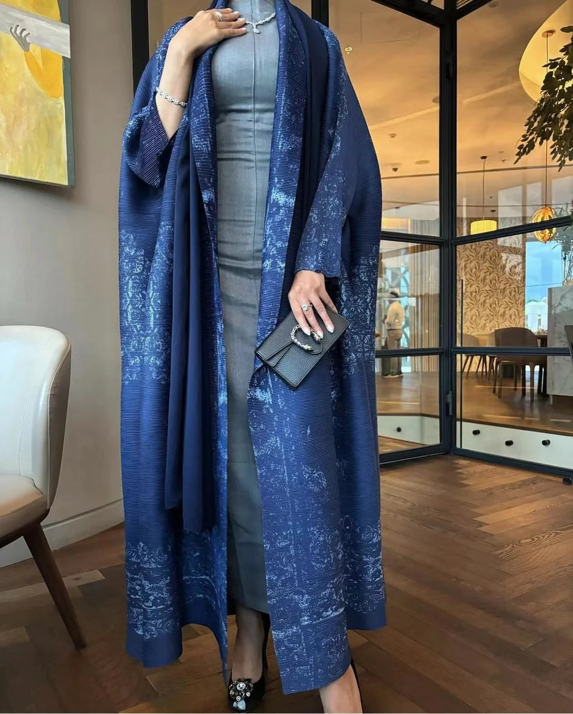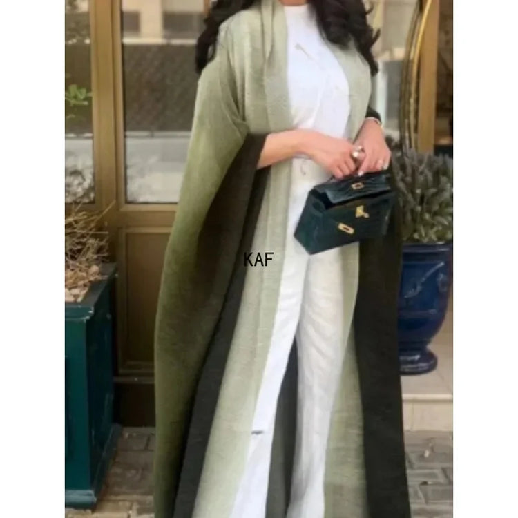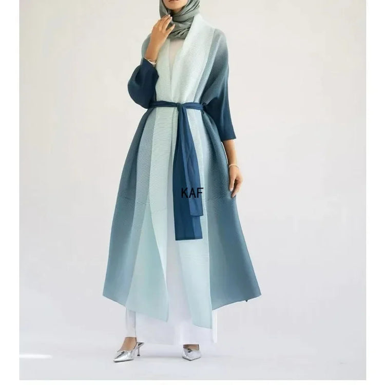 Miyake Women's Cardigan Wool Sweater Elegant Loose Plus Size Gradient Pleated Fold Collar Bat Windproof Strap Lace 55 Inches