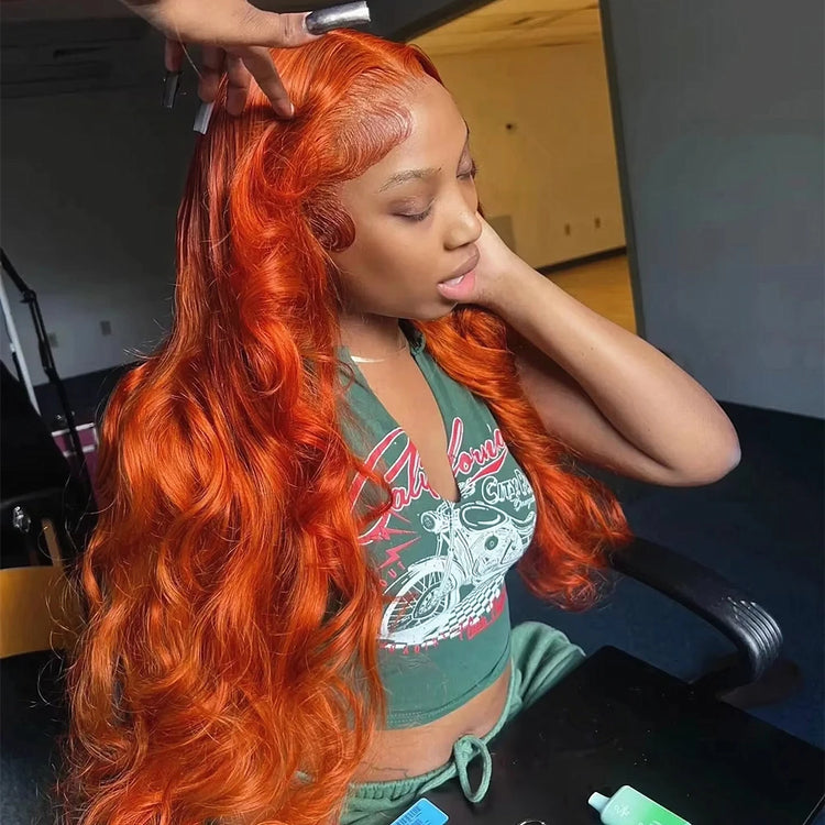 Neddie 13x6 Hd Lace Frontal Orange Ginger Human Hair Wig Body Wave Lace Front Wigs for Women Loose Wave Colored Wigs Brazilian