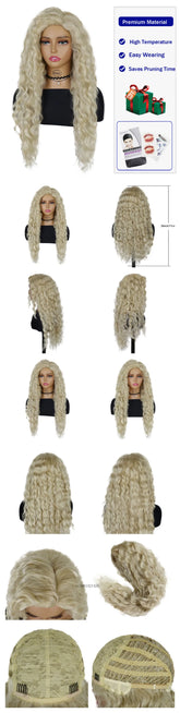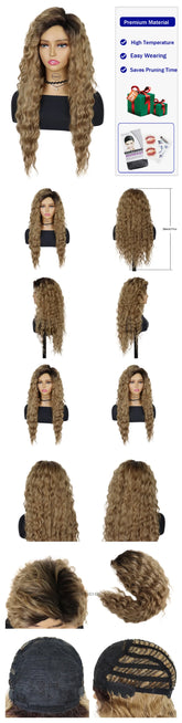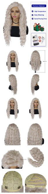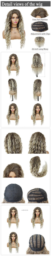 New Ash Blonde Wig Synthetic Long Curly Hair Wigs for Women Fluffy Wave Ombre Wig Costume Carnival Party Regular Cur Wig 26 Inch