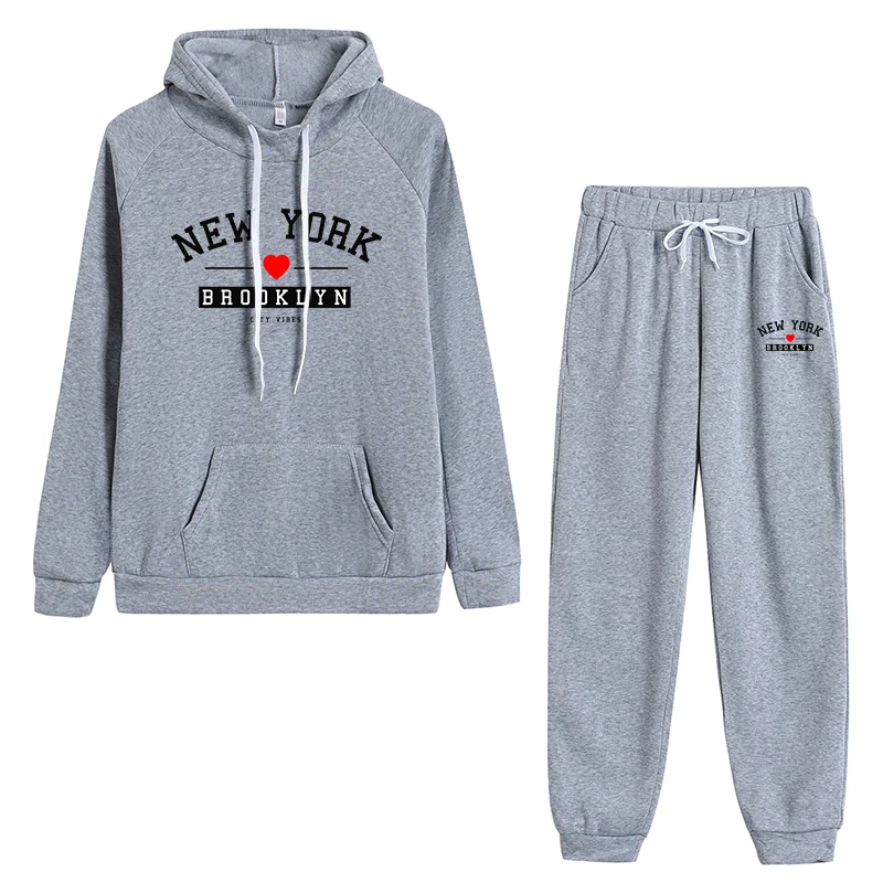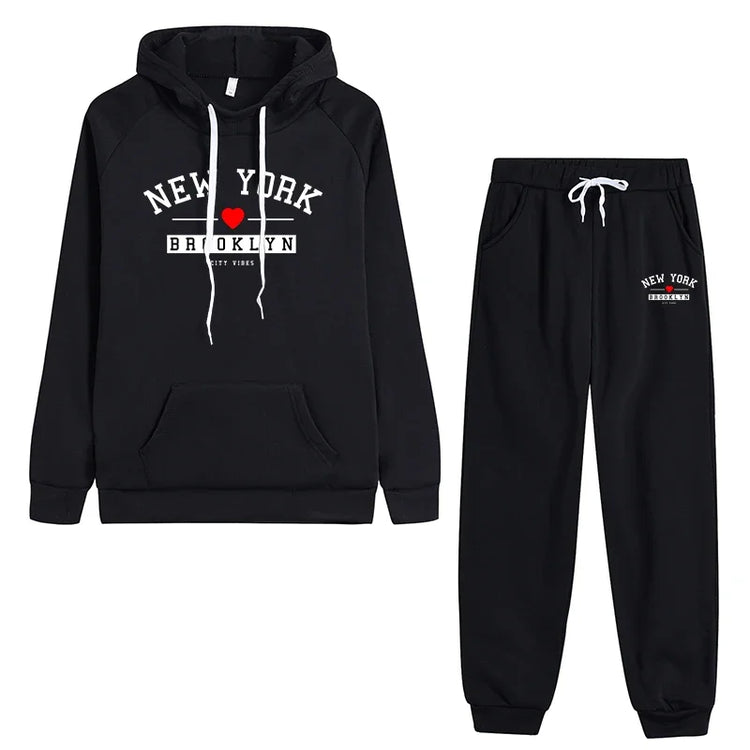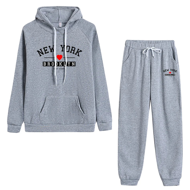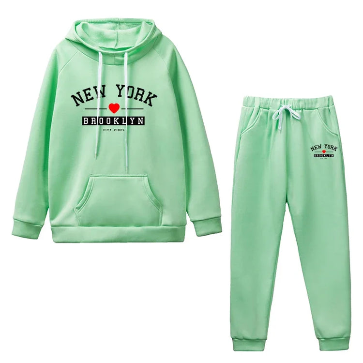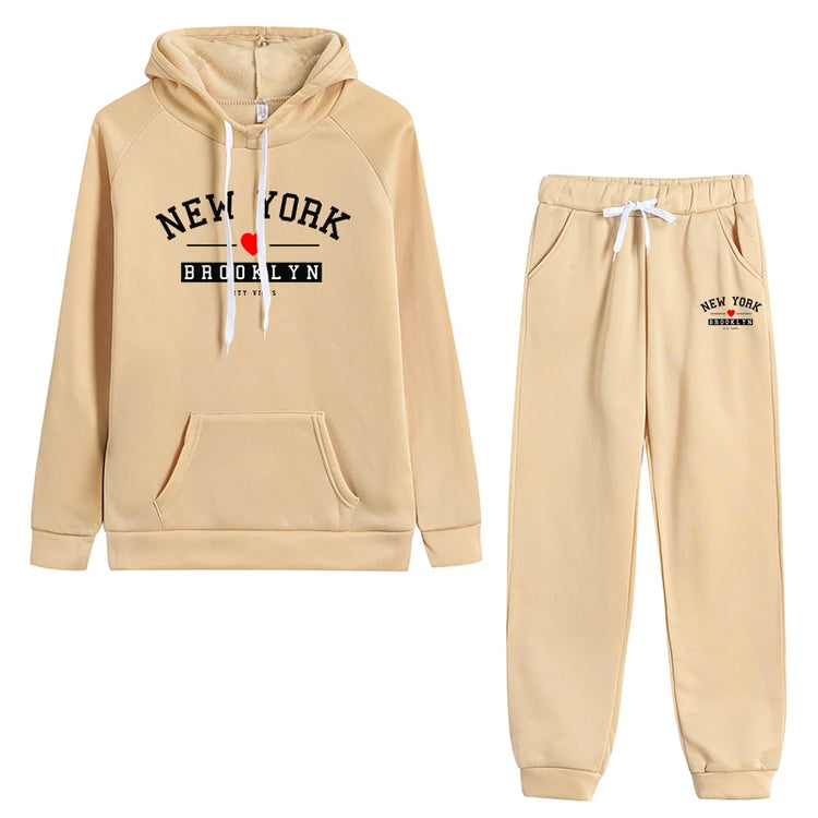 New Trend Women's Tracksuit Hoodies and Sweatpants High Quality Ladies Daily Casual Sports Jogging Suit New York Printed Outfits