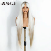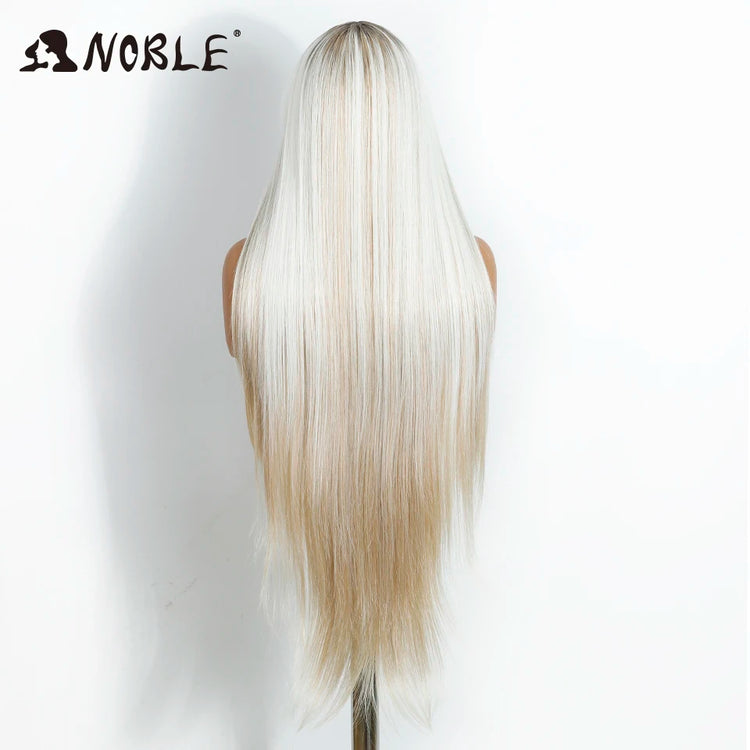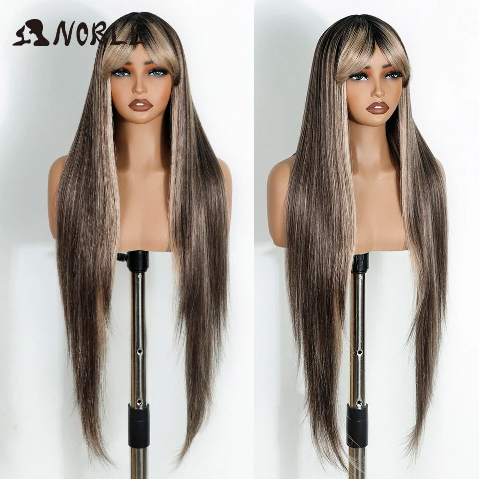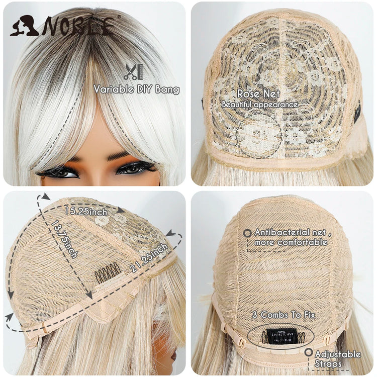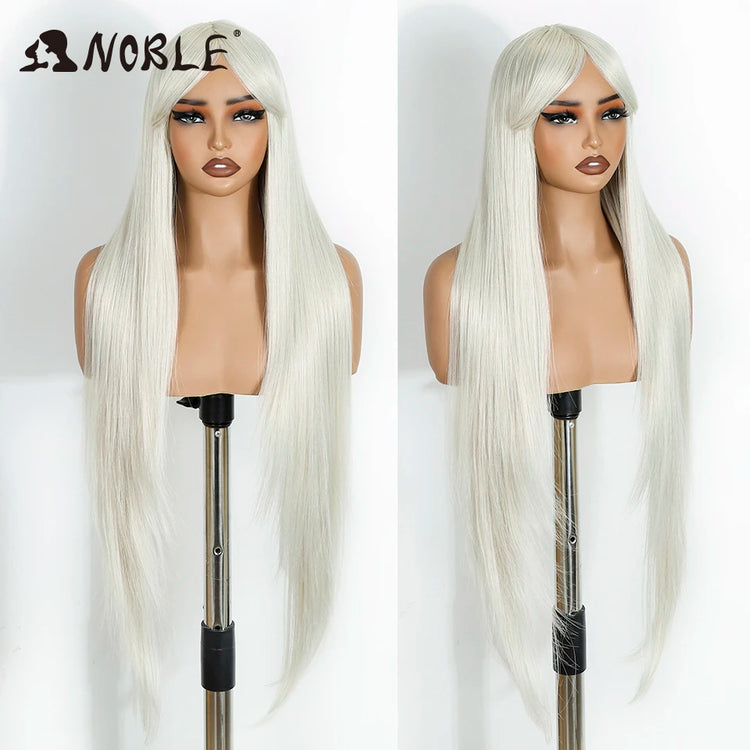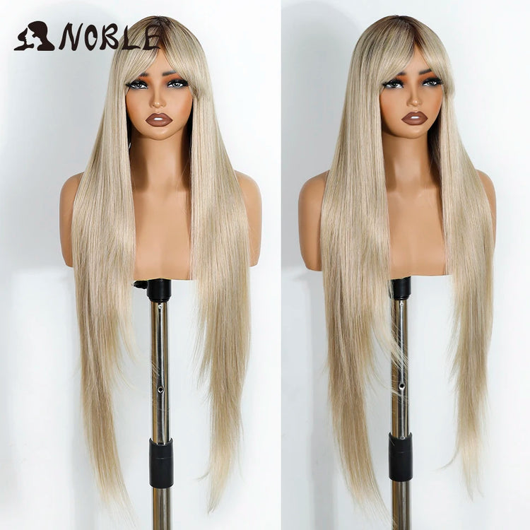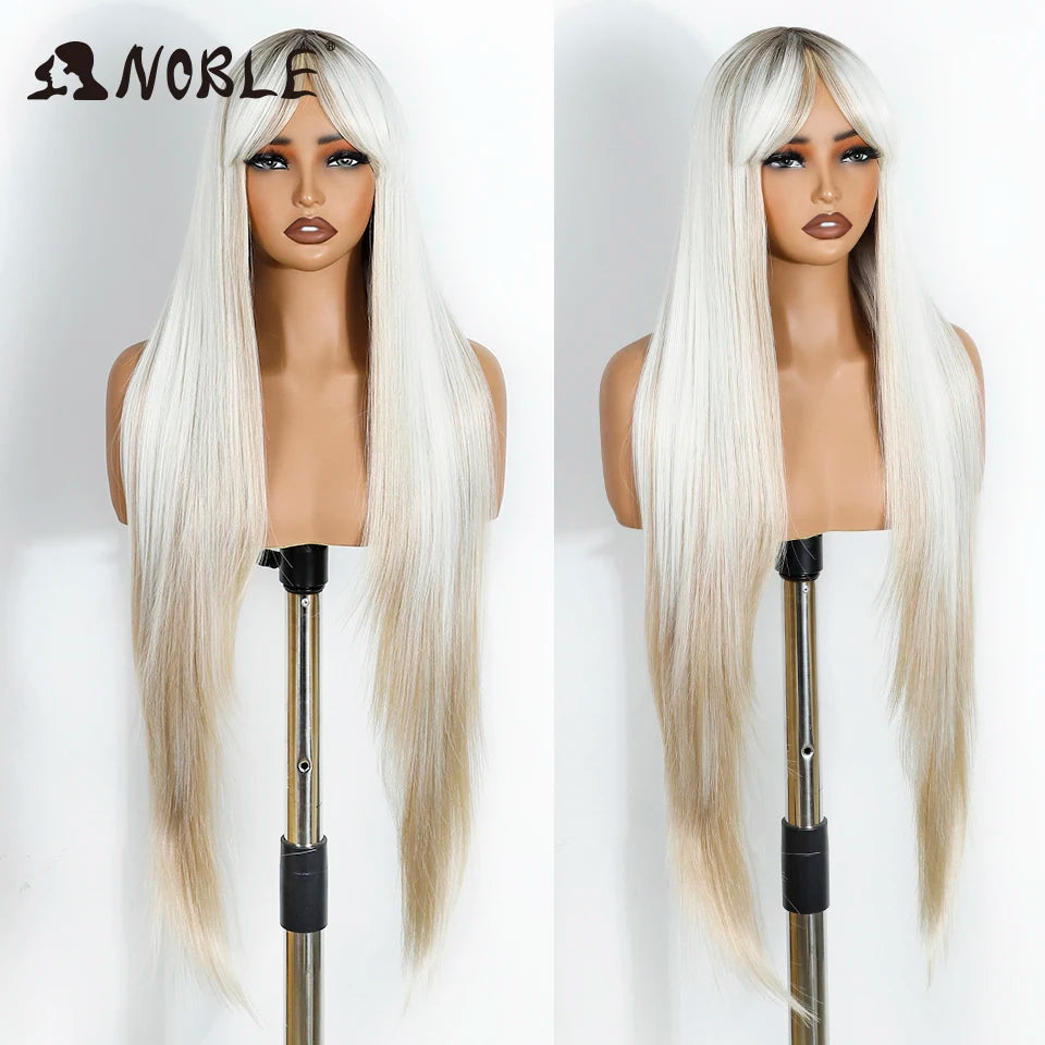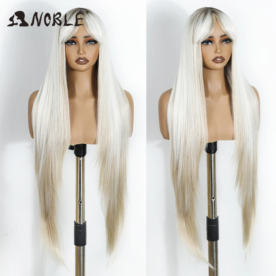 Noble Synthetic Wig With Bangs Long 36 Inch Straight White Wig Ombre Blond Wig Colored Wig Wig For Women Cosplay Wig For Women