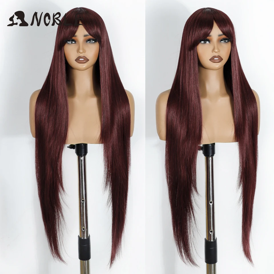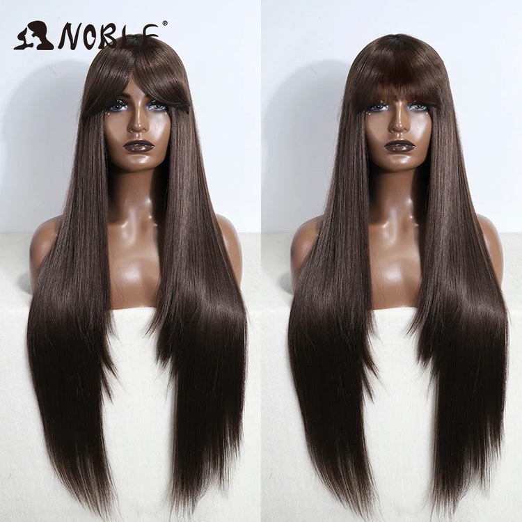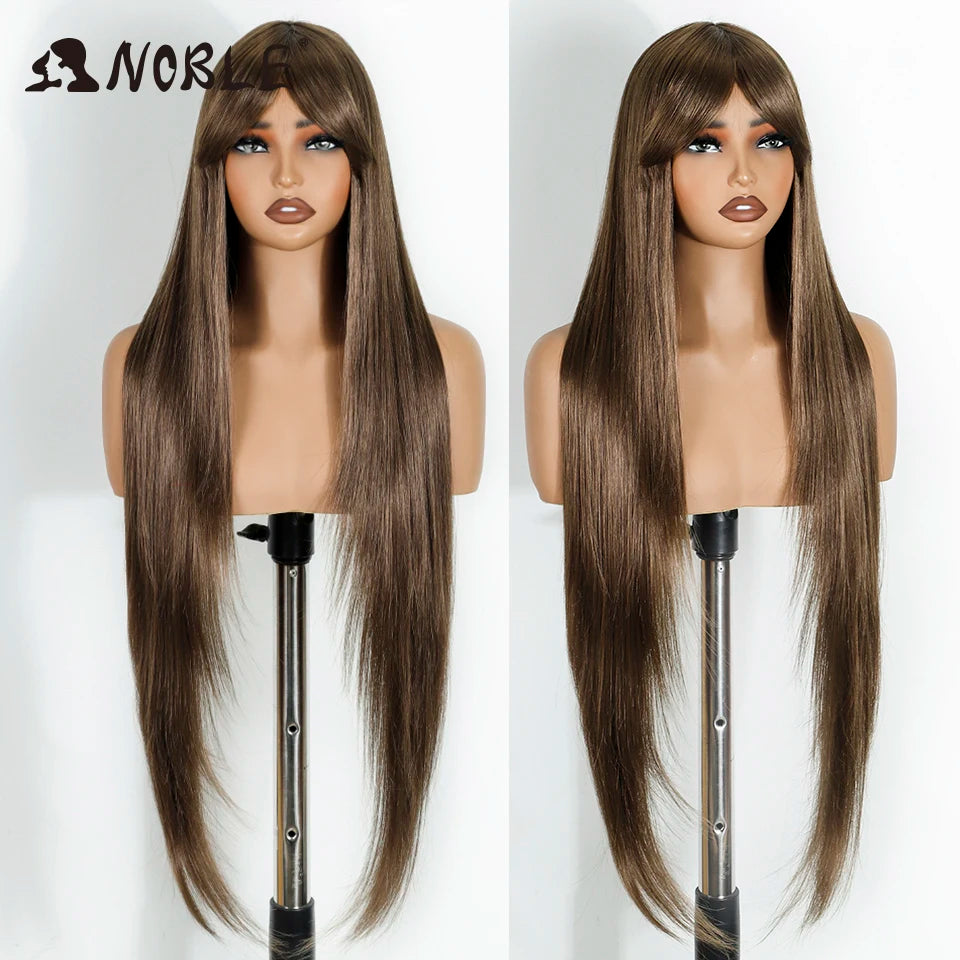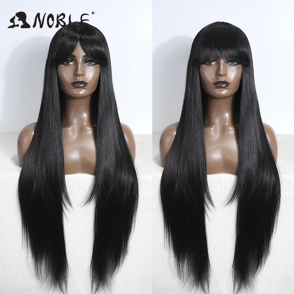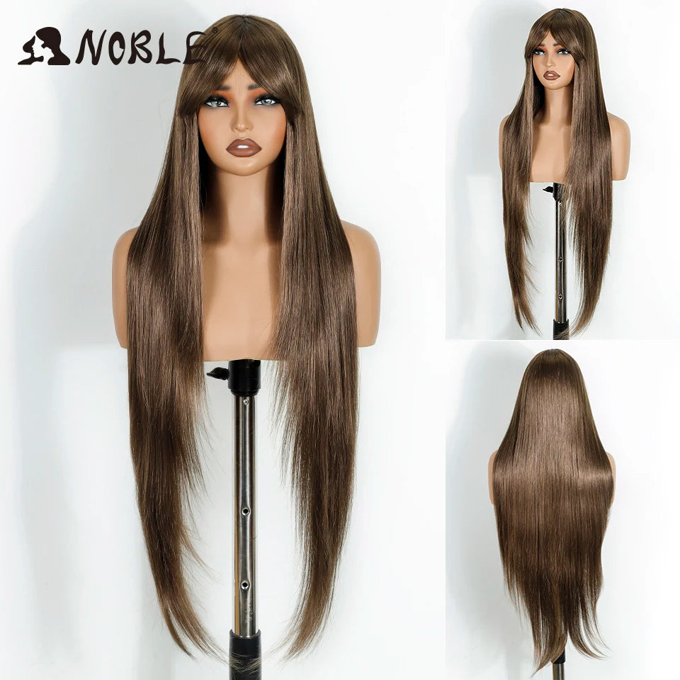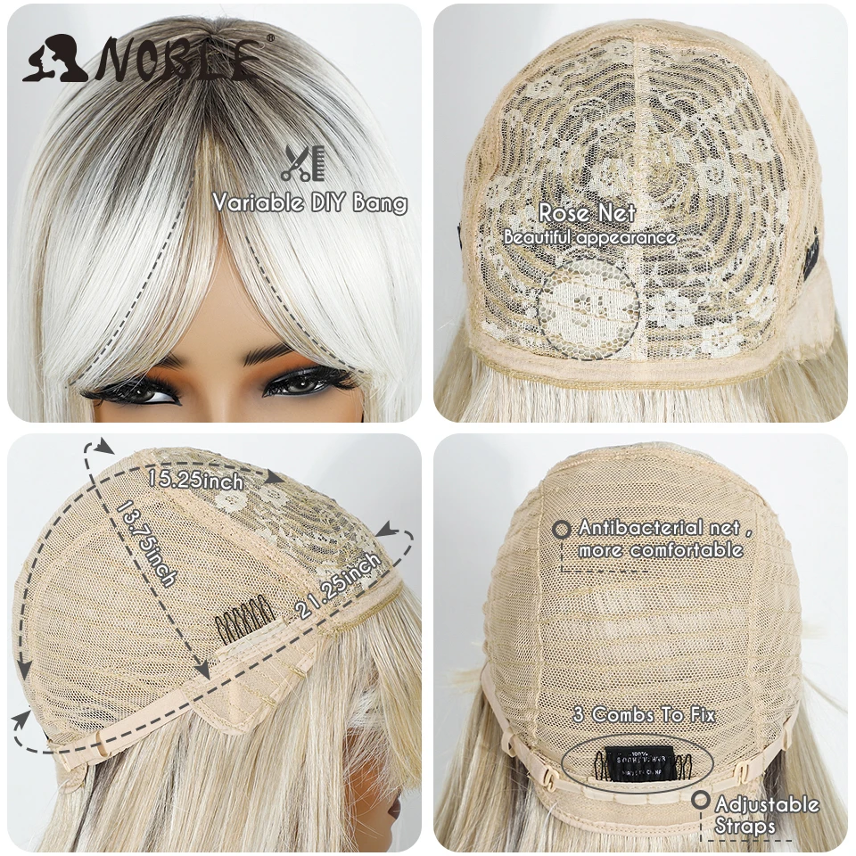 Noble Synthetic Wig With Bangs Long 36 Inch Straight White Wig Ombre Blond Wig Colored Wig Wig For Women Cosplay Wig For Women