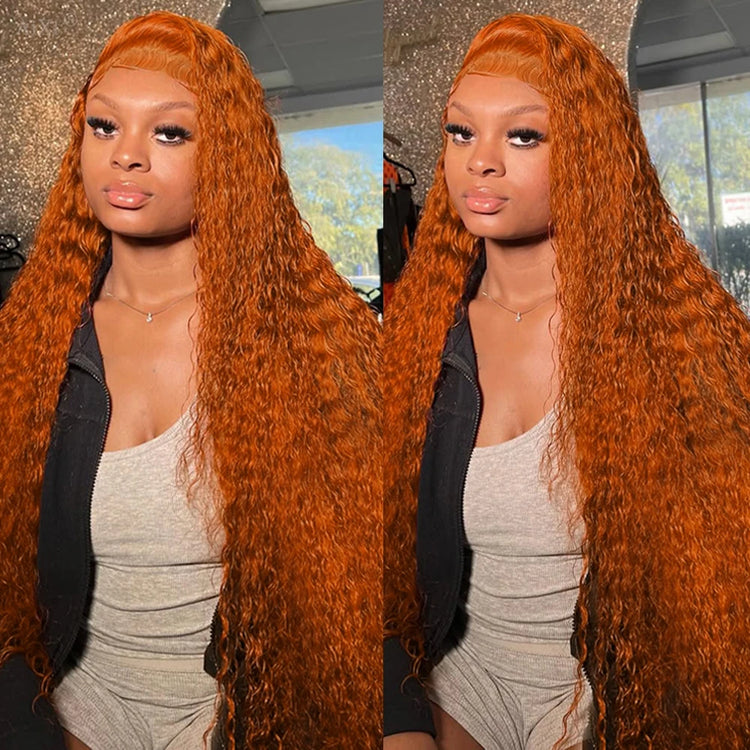 Orange Ginger Lace Front Wig Human Hair 13x6 Deep Wave Lace Front Wigs 38 Inch Water Wave Human Hair Wig Pre Plucked Curly Wigs