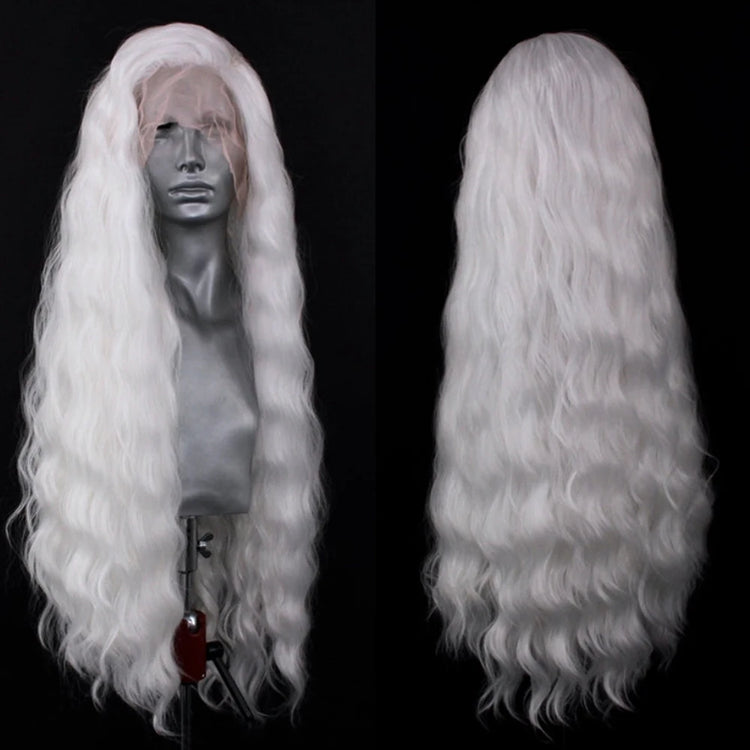 Platinum Blonde Wave Wig Synthetic Lace Front Wigs For Women Long Natural Wave Lace Hair White Black Pink Wig Loose Curl Cosplay