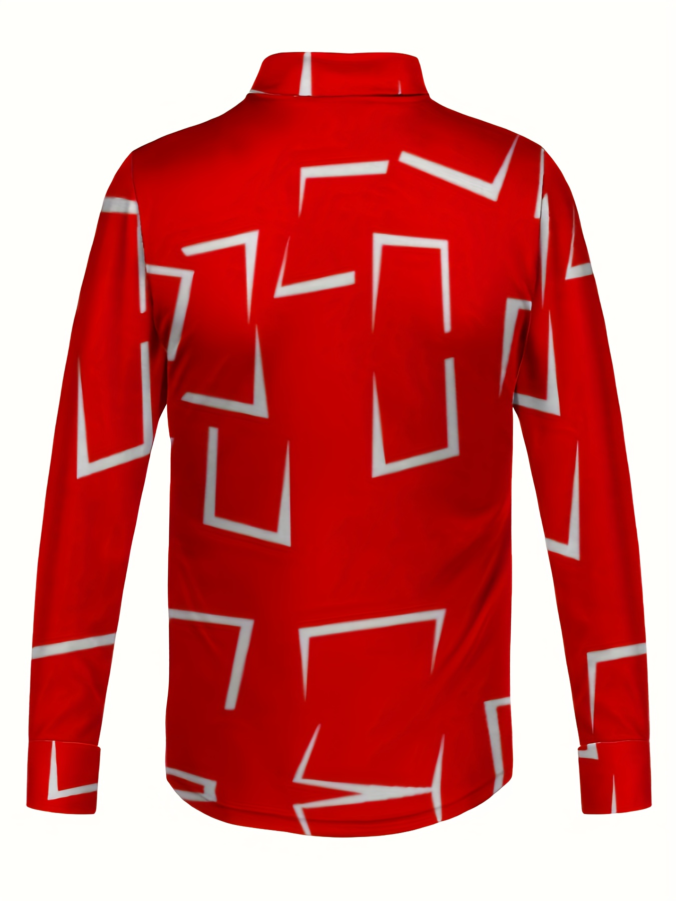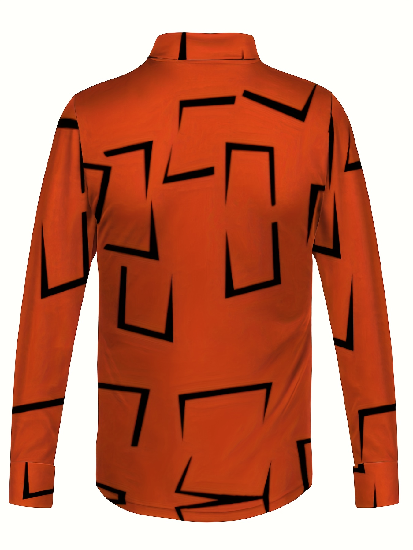 Plus Size Men's Geometric Pattern Print Shirt Slim Long Sleeve Shirt For Autumn/winter, Men's Clothing