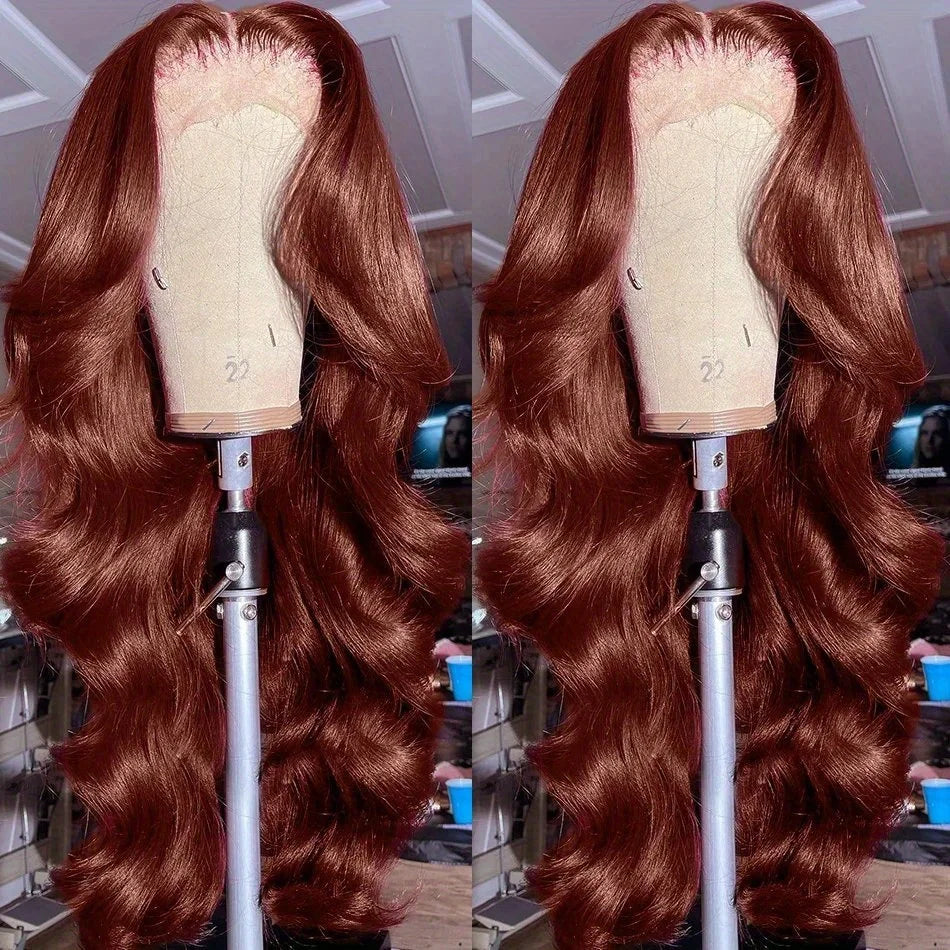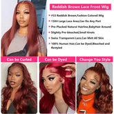 Reddish Brown 13x6 Lace Frontal Wig Body Wave Colored Human Hair Wigs On Clearance Sale HD Glueless Red Brown Lace Front Wig