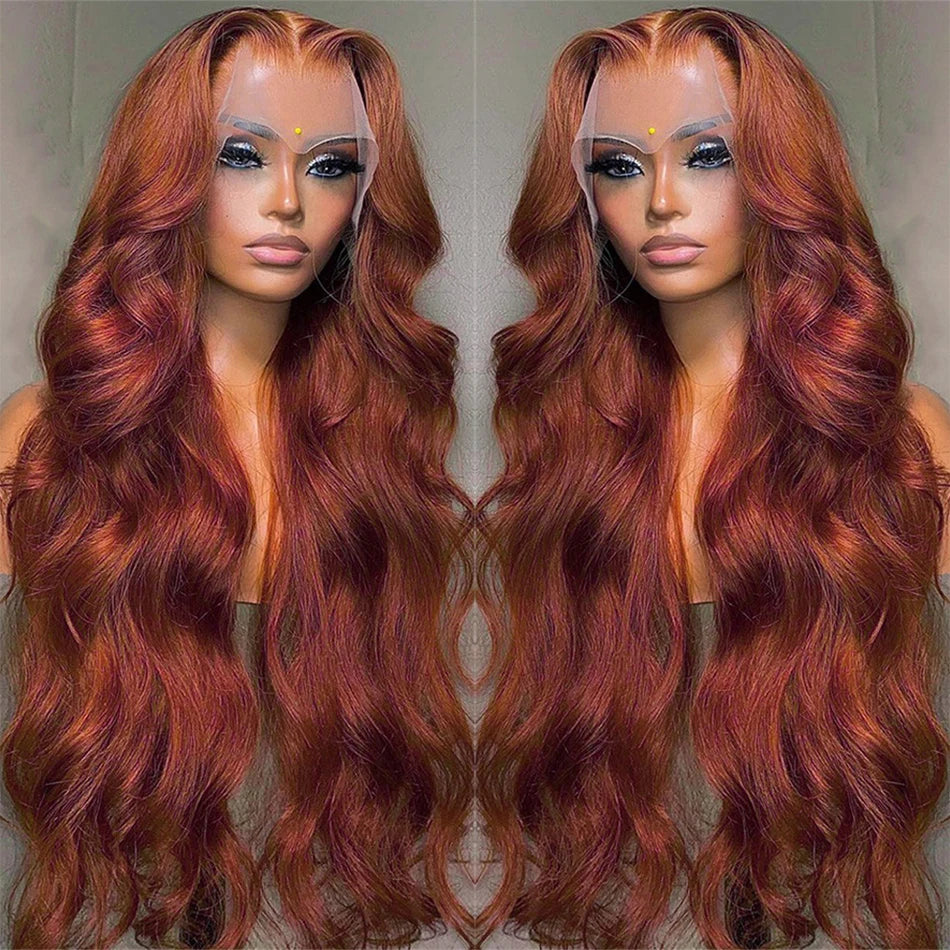 Reddish Brown Body Wave Lace Frontal Human Hair Wig 13x6 Transparent Lace Frontal Wig 13x4 Glueless Wigs For Women