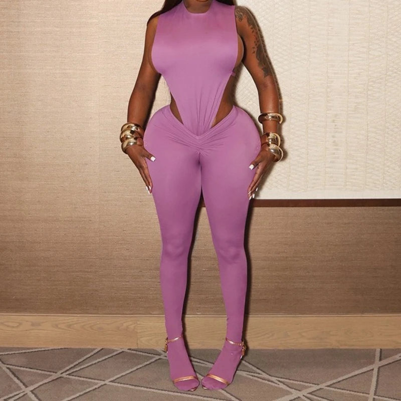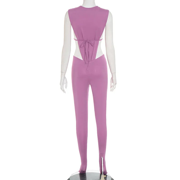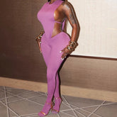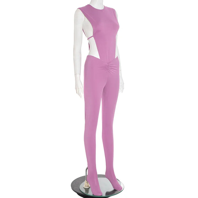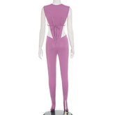 Sexy Women Tracksuit 2 Piece Set Sleeveless Side Split Bodysuits+Ruched Foot Leggings Matching Set Streetwear Outfits 2025